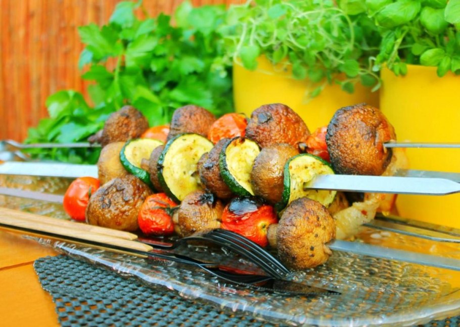 Овощной шашлык с шампиньонами на шпажках