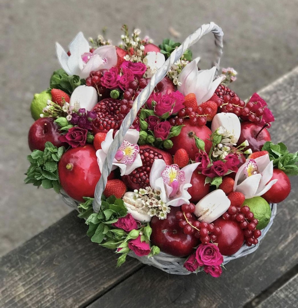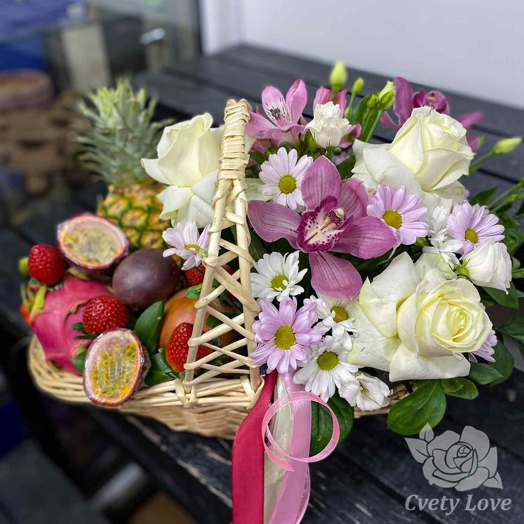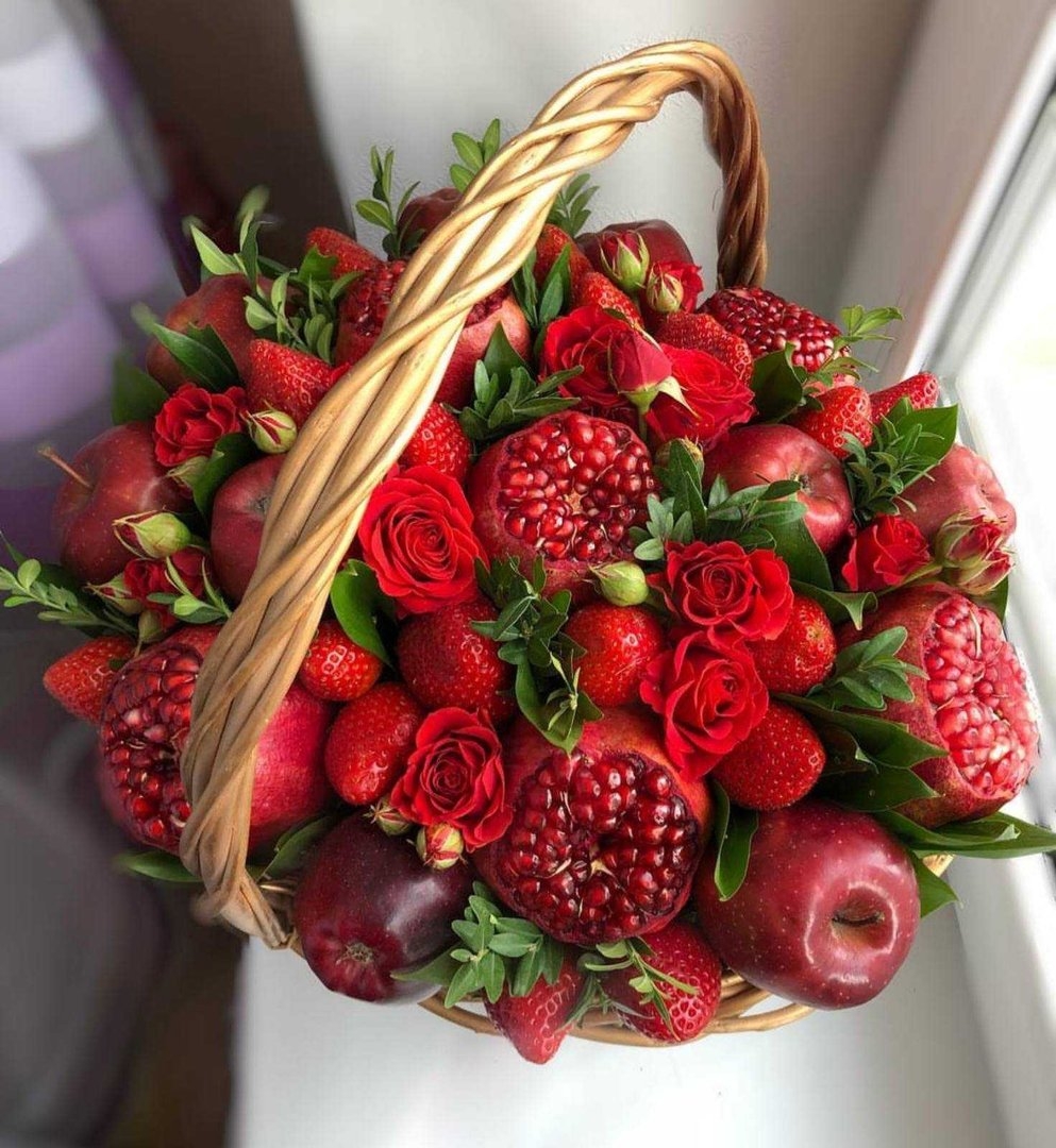 Корзина с фруктами и розами