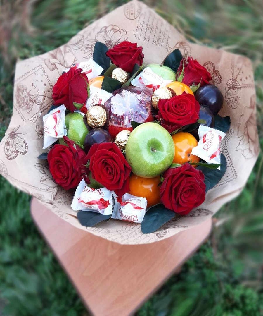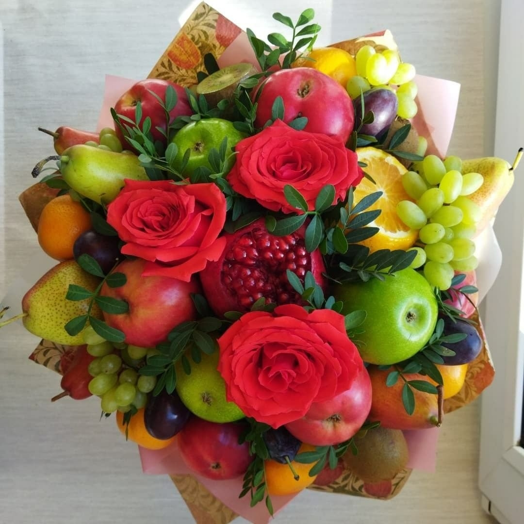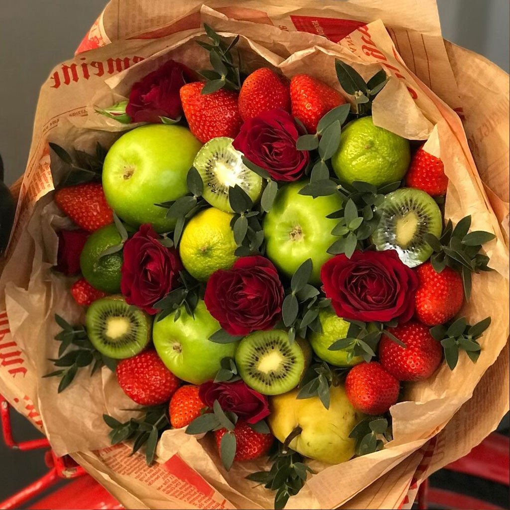 Фруктово цветочный букет