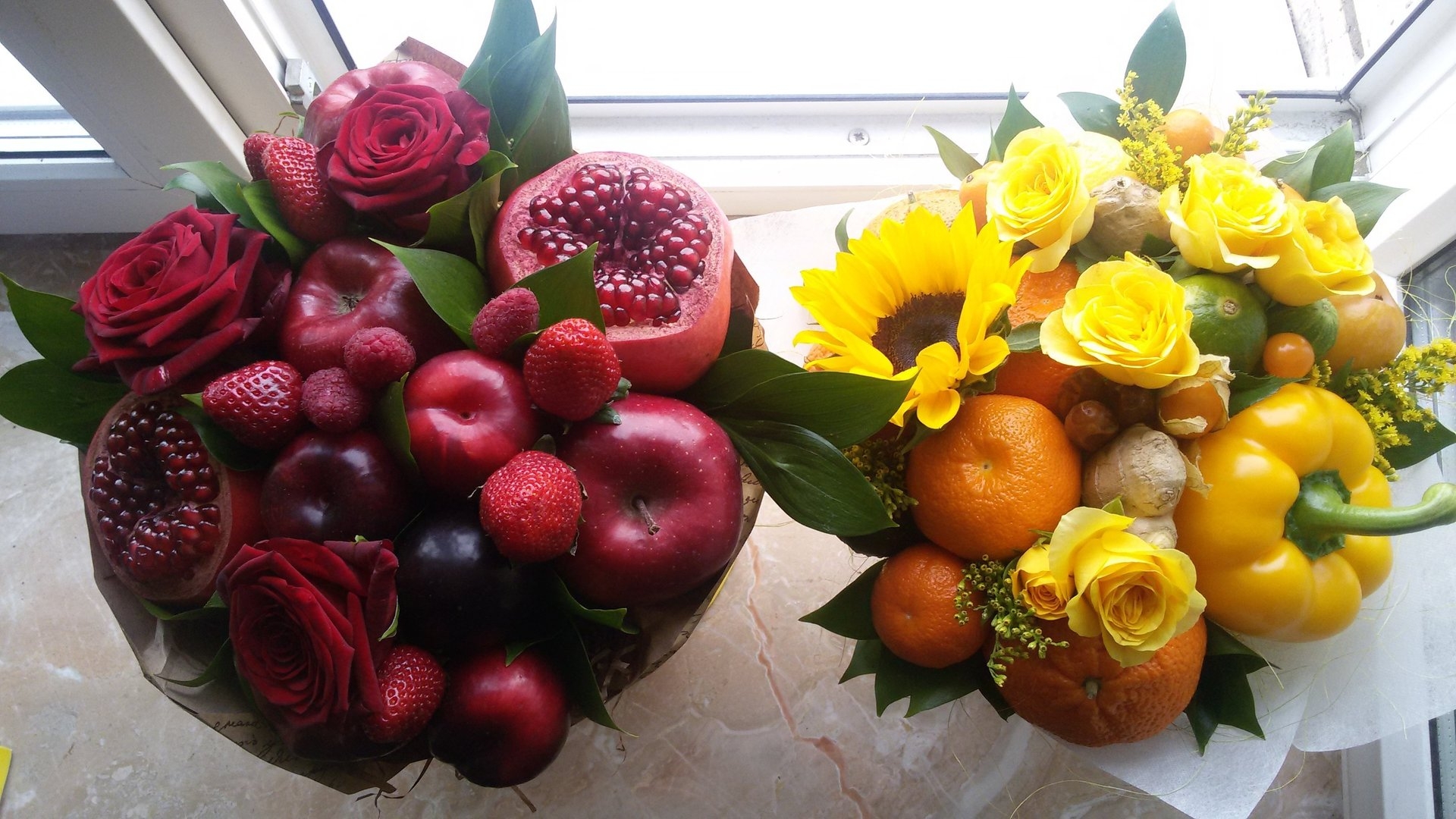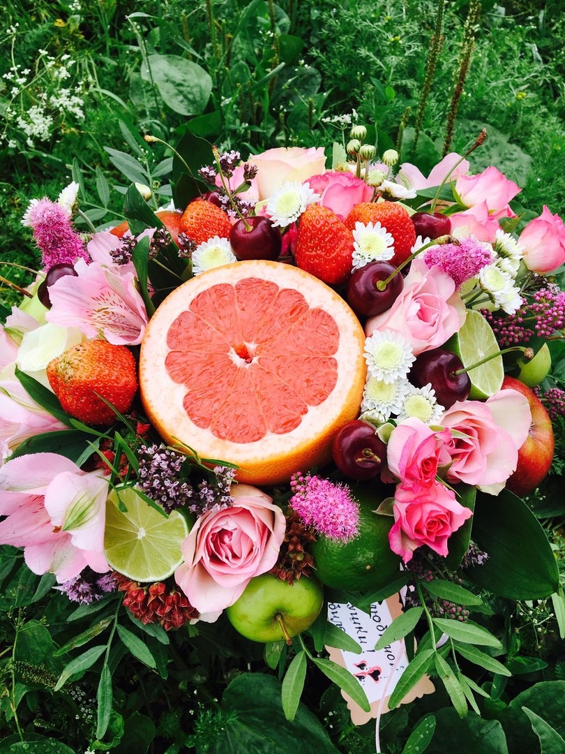 Фуд букет половина цветы фрукты