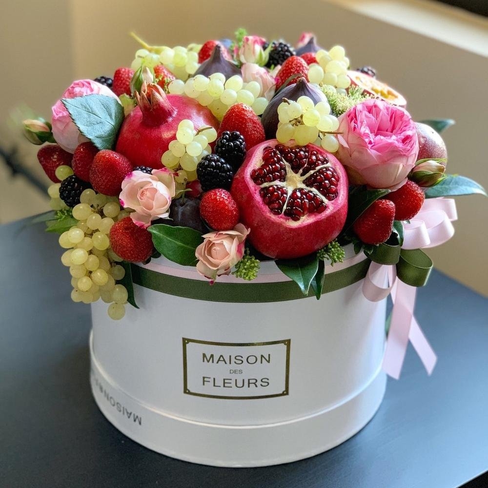Фруктовый букет в шляпной коробке
