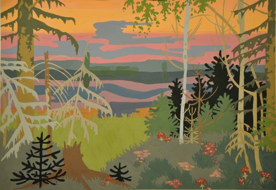 Декоративный пейзаж гуашью