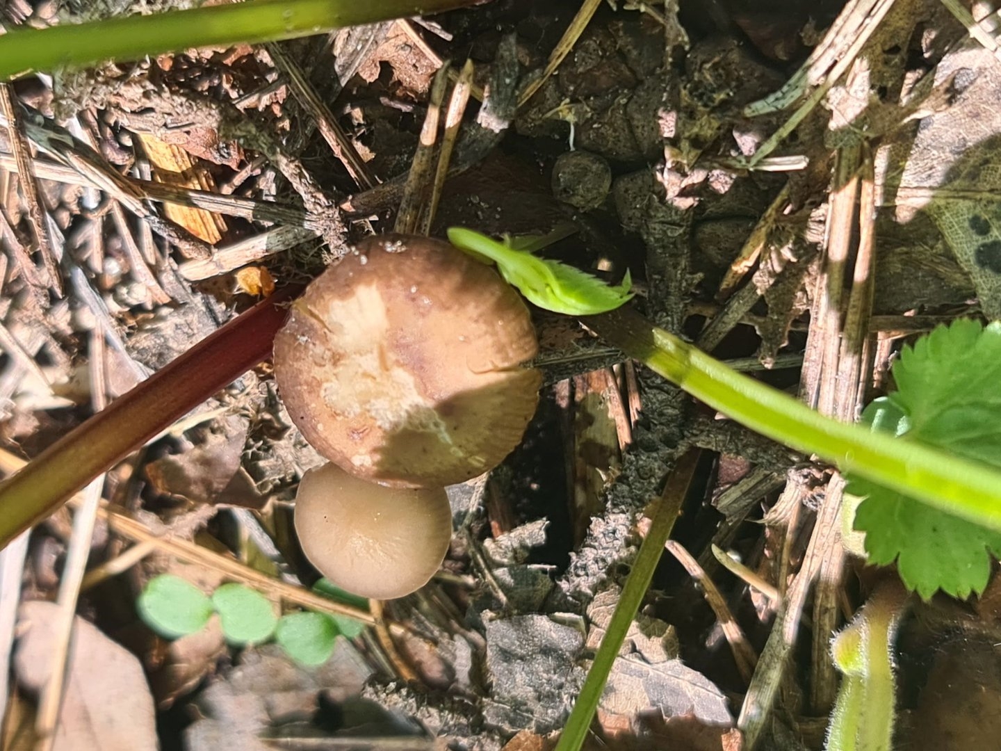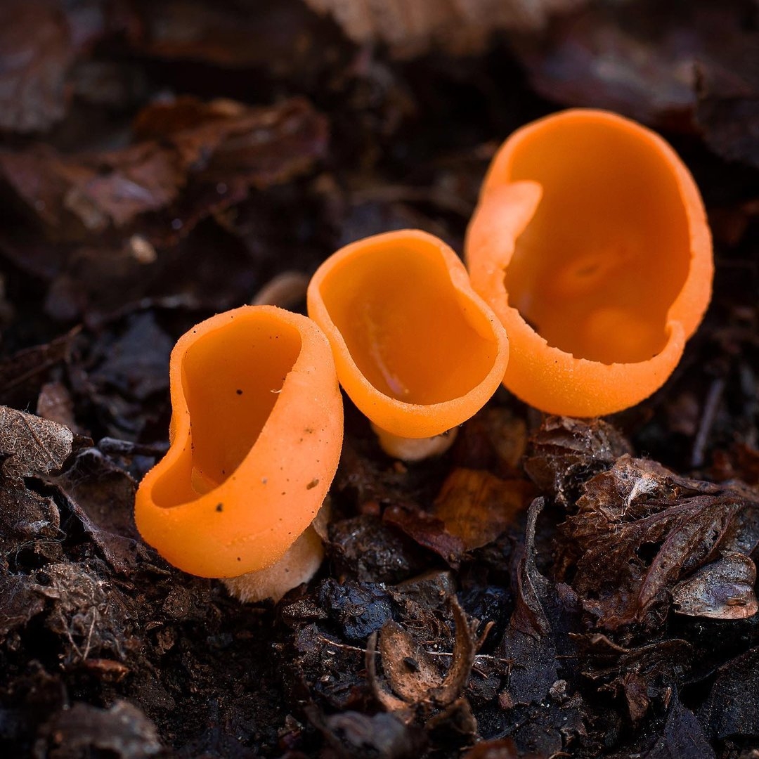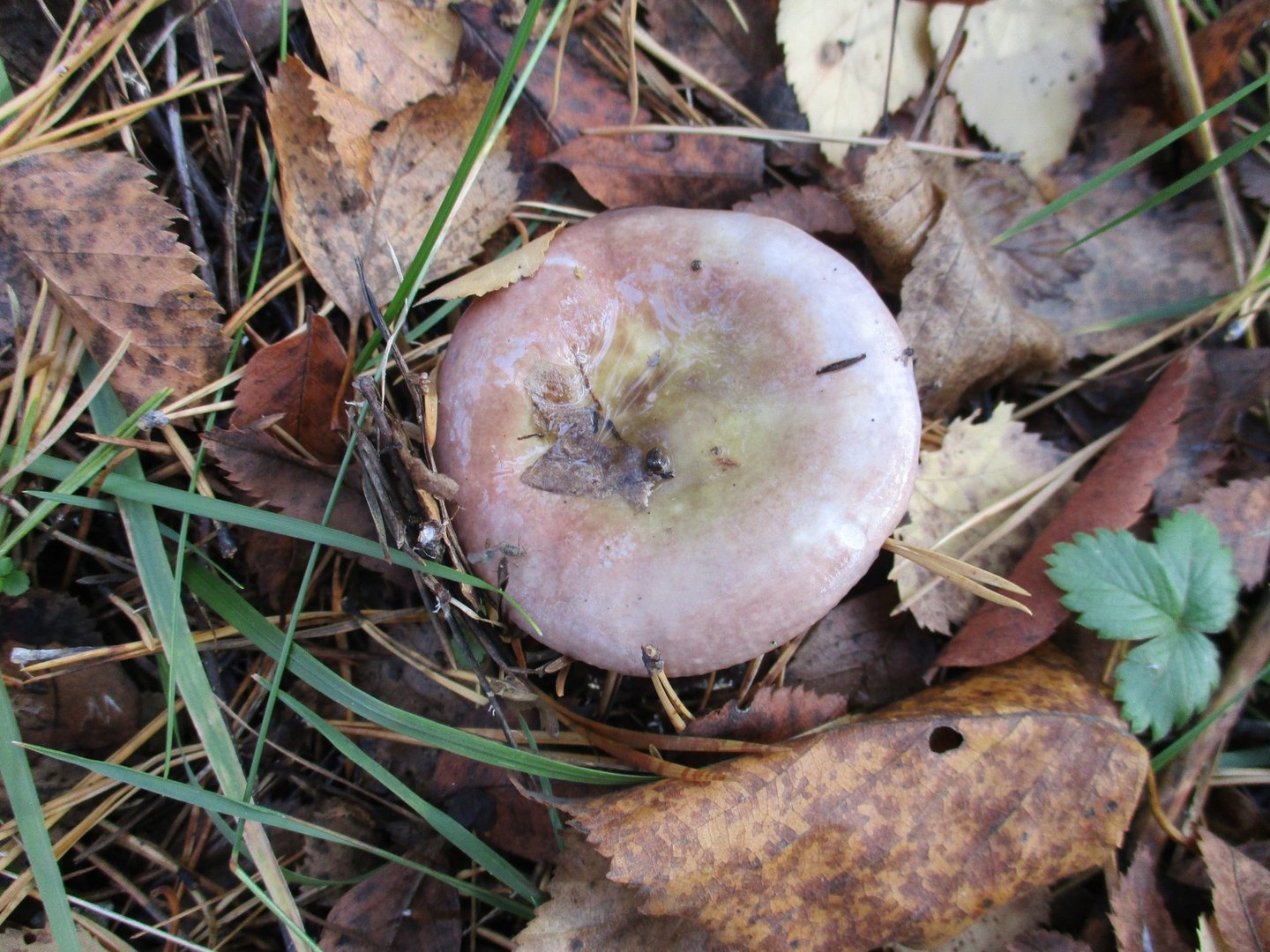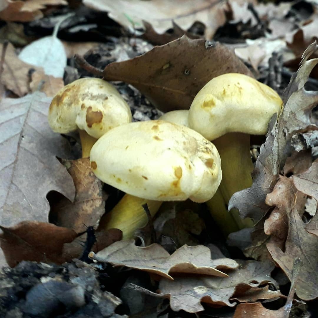 Грибы выросшие среди опавших листьев