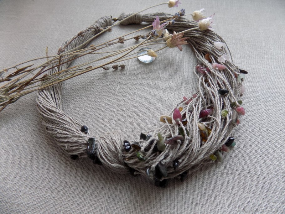 Украшения из натурального льна и камней