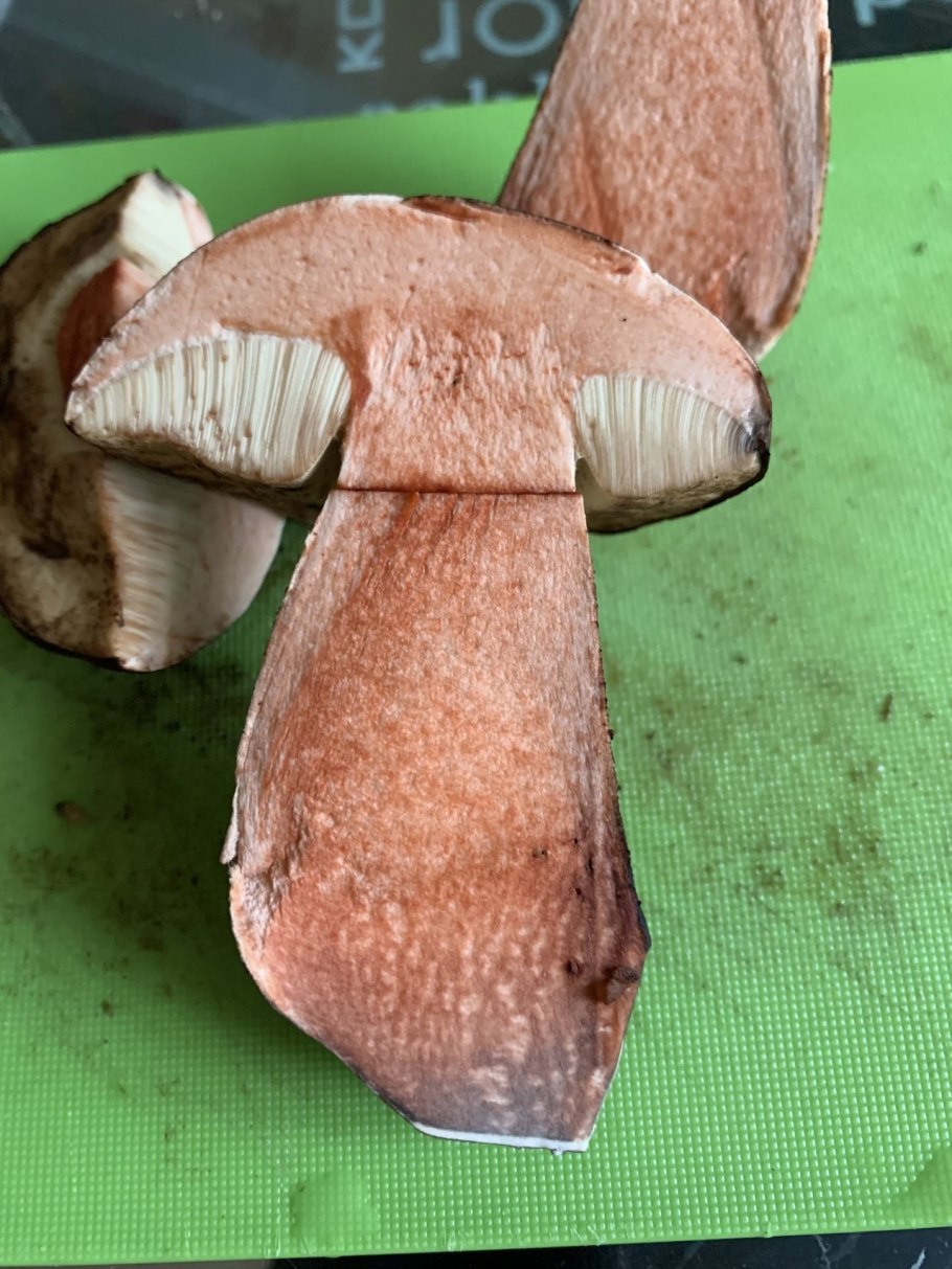 Белый гриб порозовел на срезе