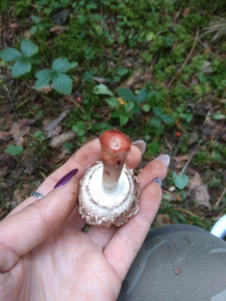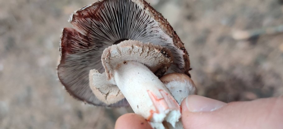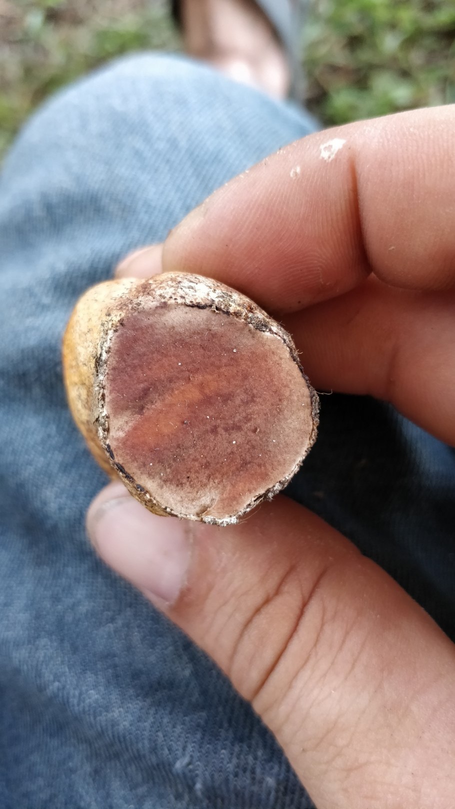 Гриб розовеет на срезе