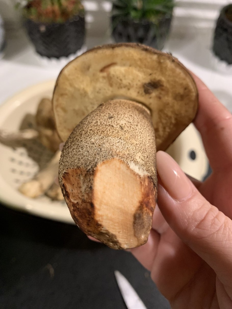 Гриб с синеющей ножкой на срезе