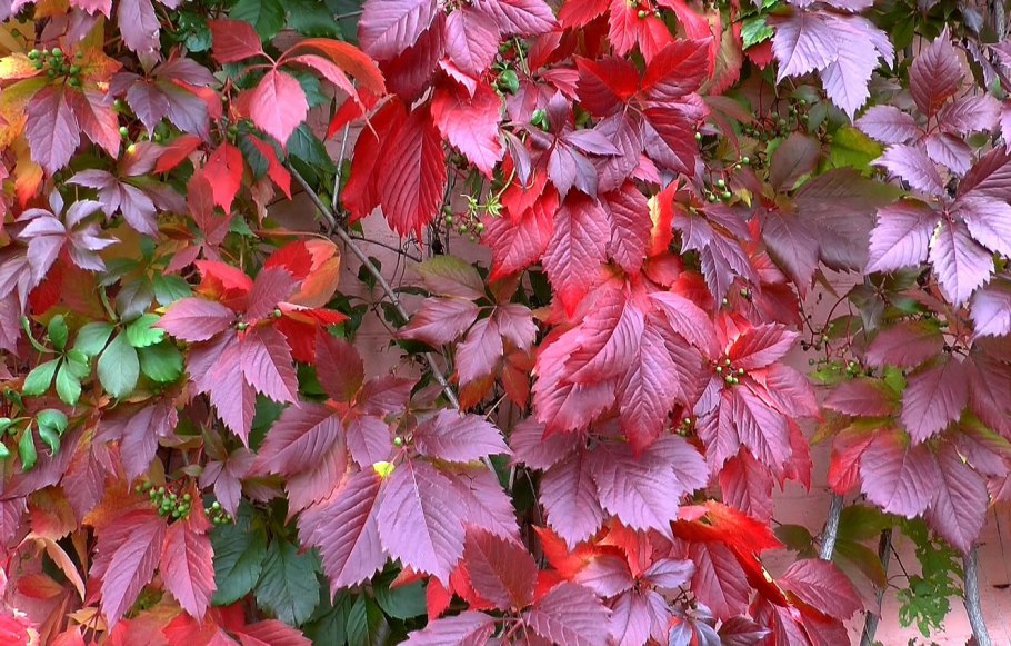 Дикий виноград с красными листьями
