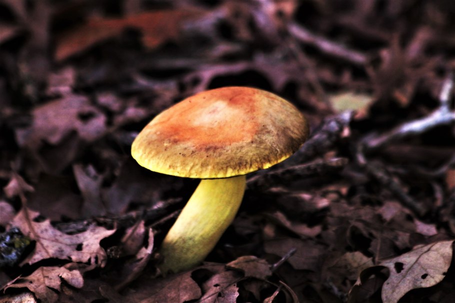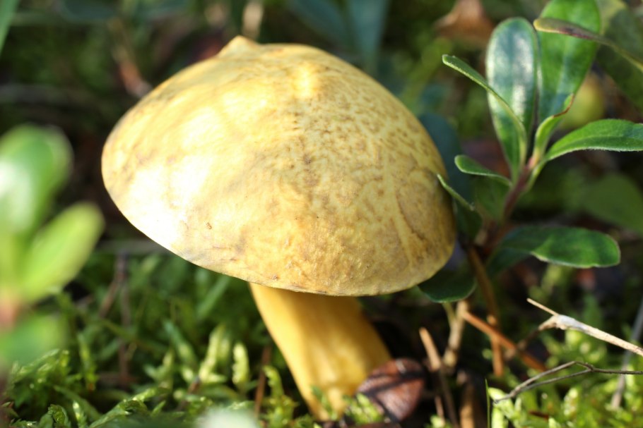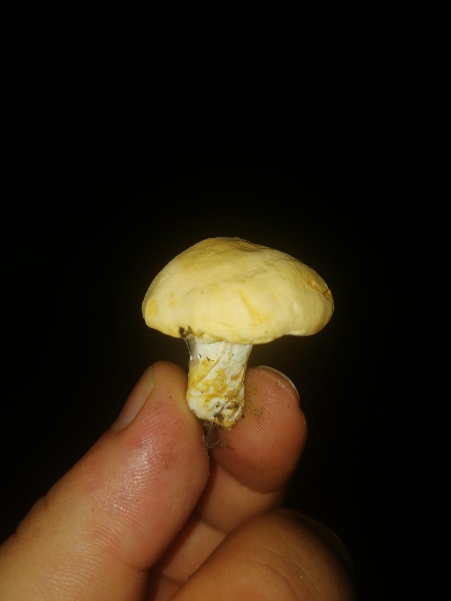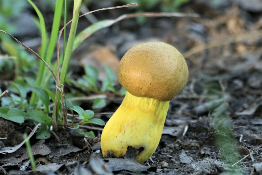 Гриб желтого цвета с толстой ножкой