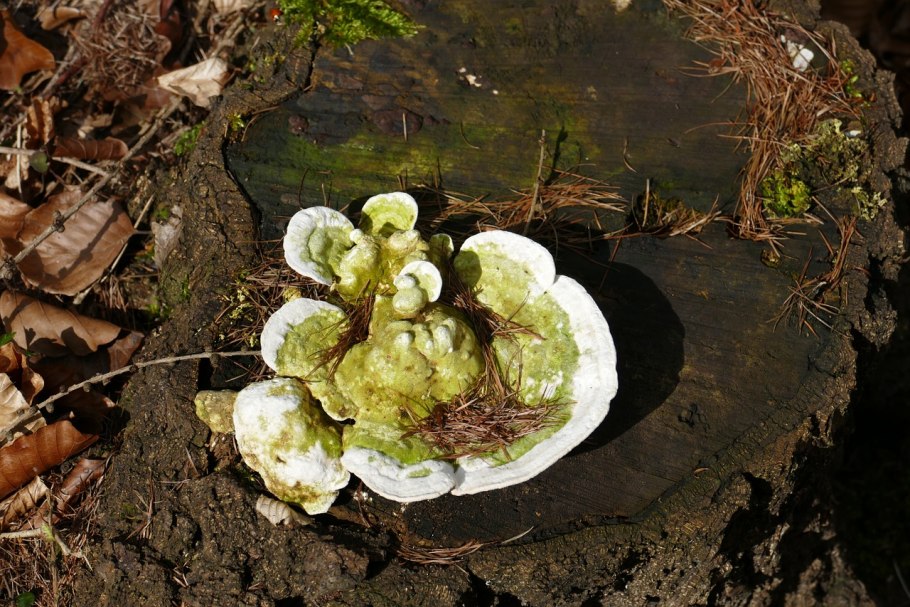 Круглые грибы на пеньке
