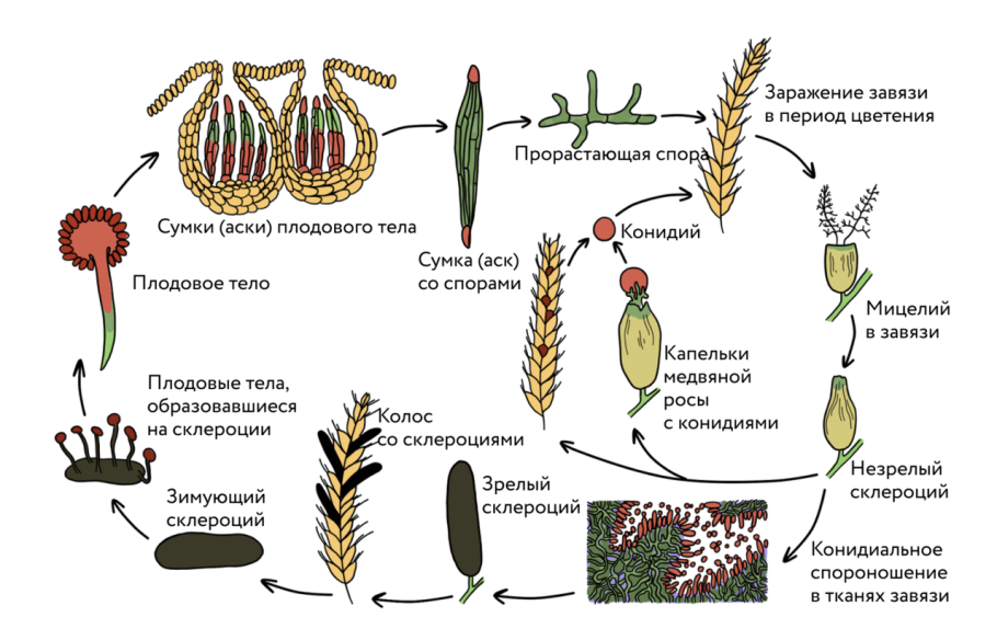 Жизненный цикл спорыньи пурпурной