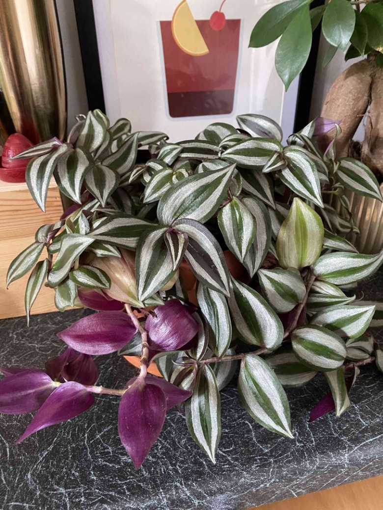Одним из близких родственников по внешнему виду и характеру является зебрина. Её листья, словно покрытые кистью художника, украшены полосками, которые придают растению живость и изысканность. Она, как и традесканция, любит свет и не боится умеренного ухода, поэтому ей легко найти место в доме.