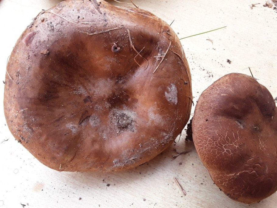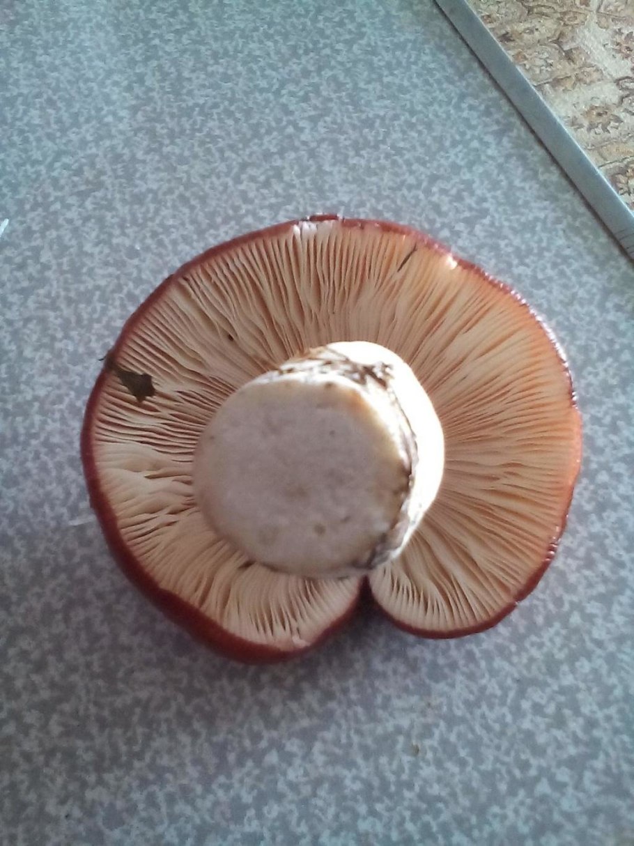 Шляпка гриба снизу коричневая