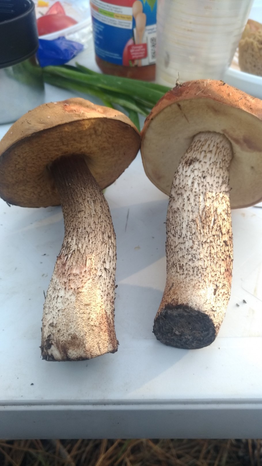 Коричневая шляпка белая ножка