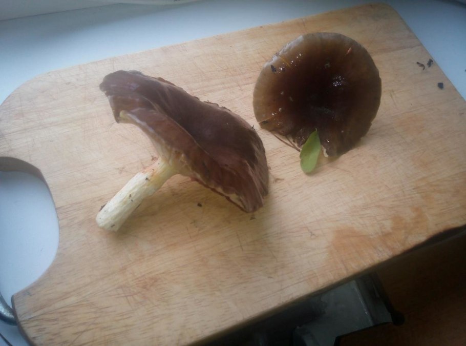 Гриб с темно коричневой шляпкой