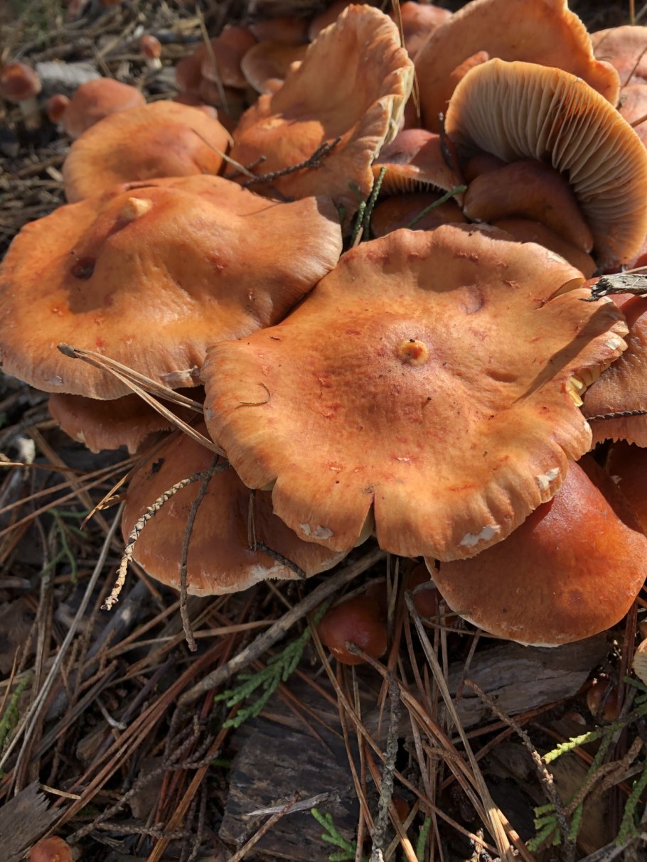 Рыжие грибы кучкой