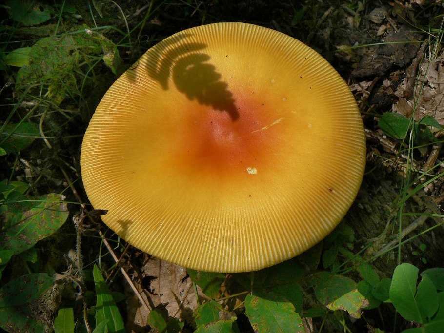 Пластинчатый гриб снизу шляпка желтая