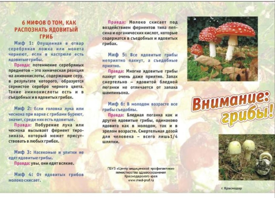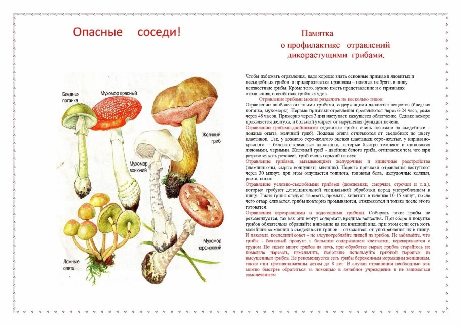 Ядовитые грибы памятка безопасности для ребенка
