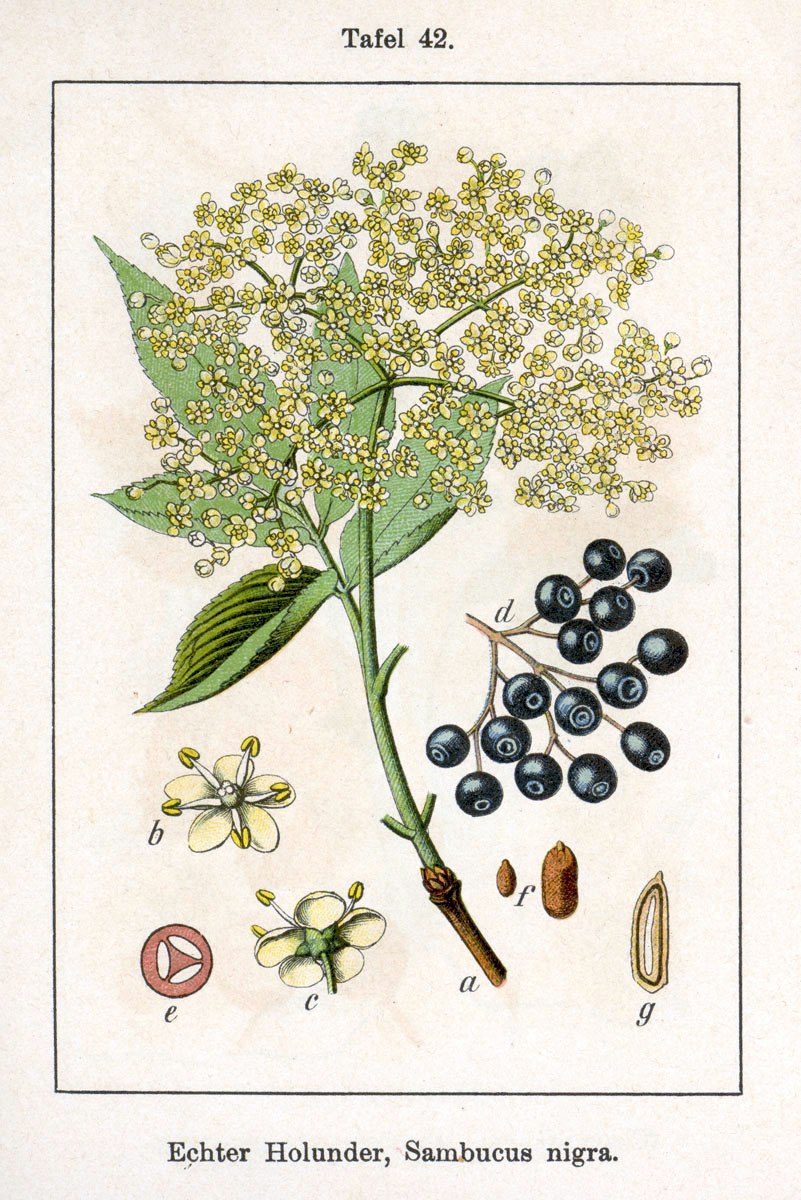 Бузина черная Ботаническая иллюстрация
