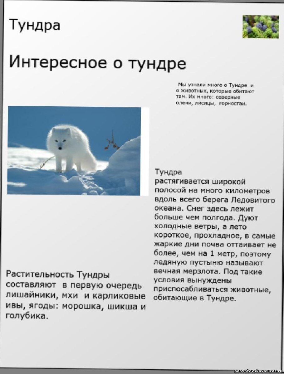 Природная зона тундра животные и растения
