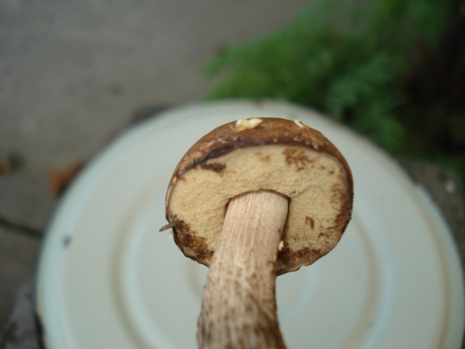 Плотный белый гриб внутри черный