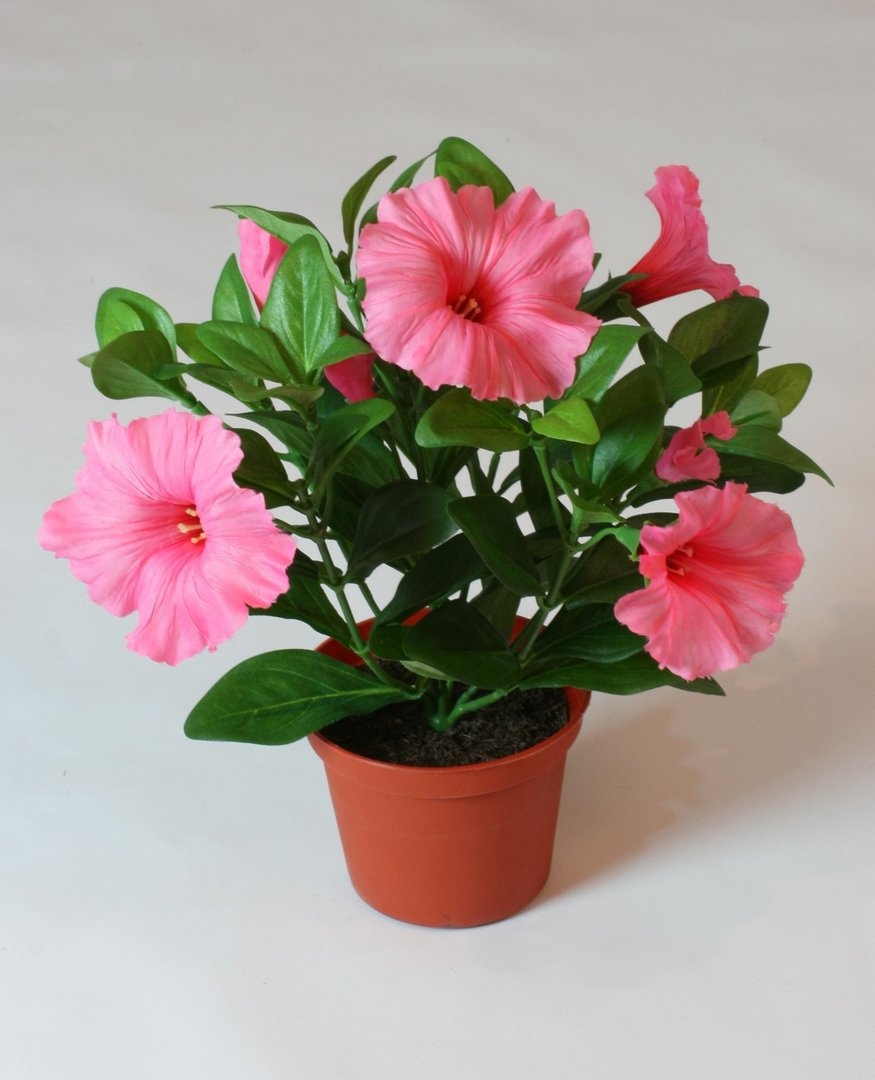 Розовый цветок в горшке
