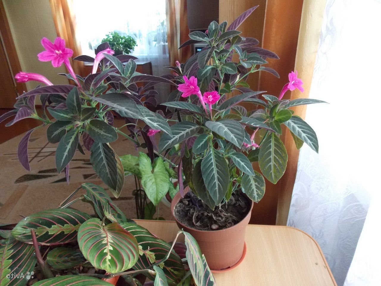 Комнатное растение с розовыми цветками