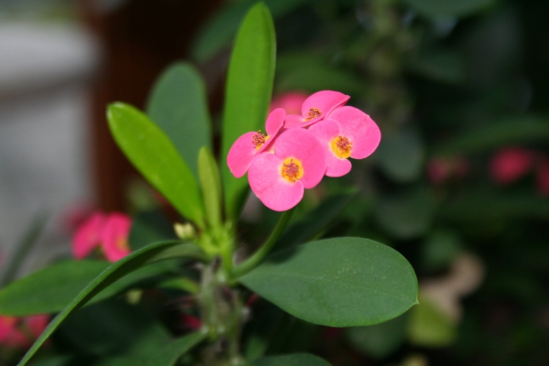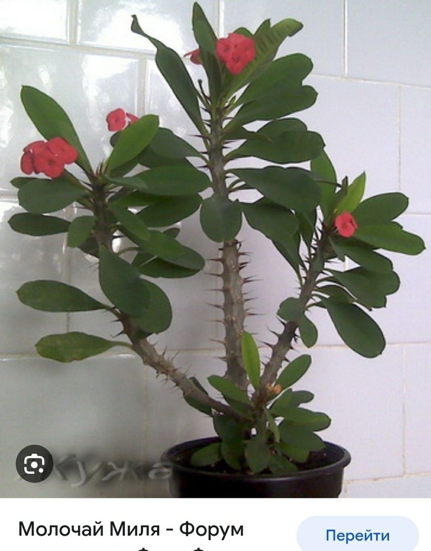 Молочай с колючками и красными цветочками