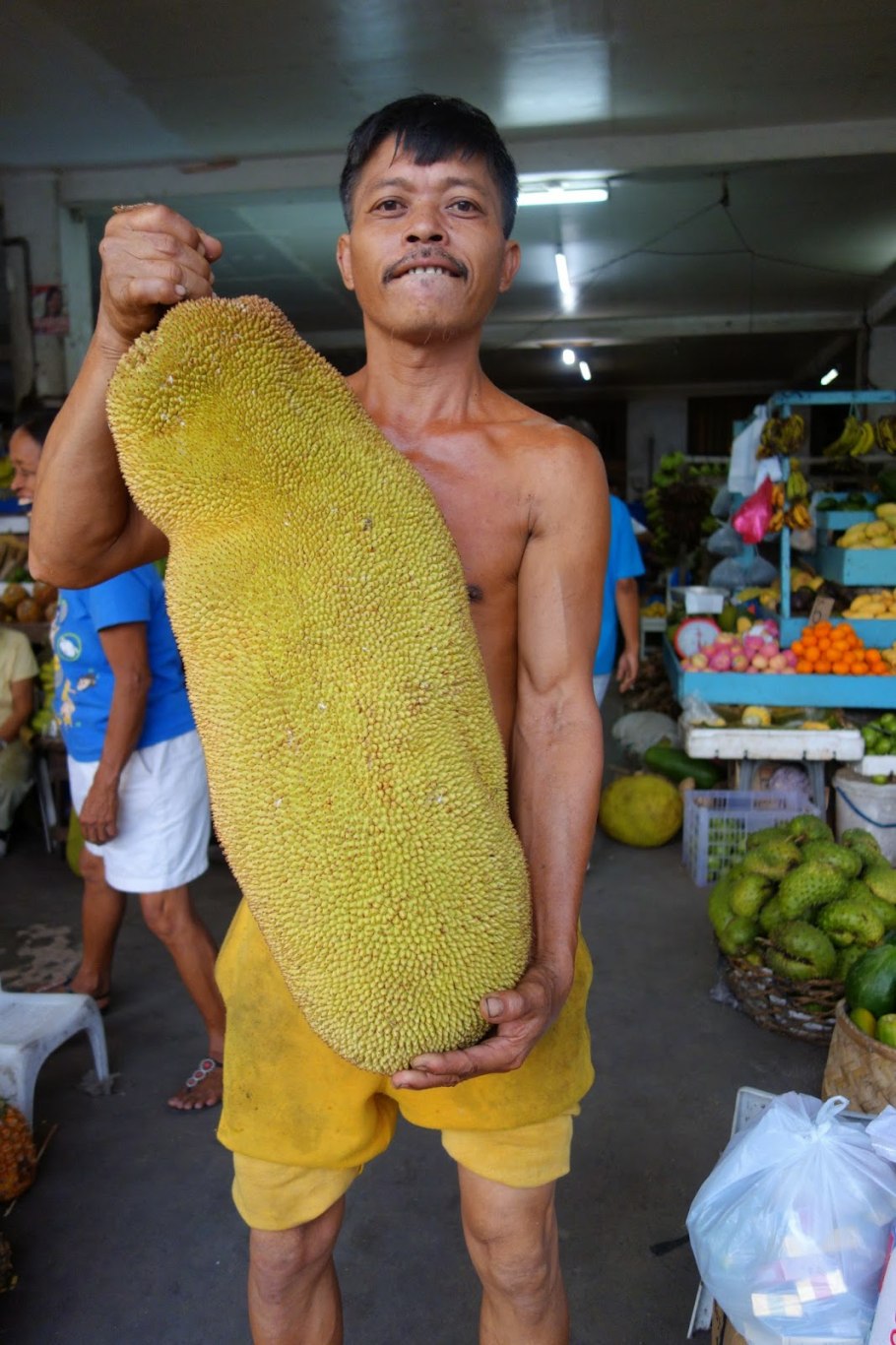 Джекфрут на фоне человека