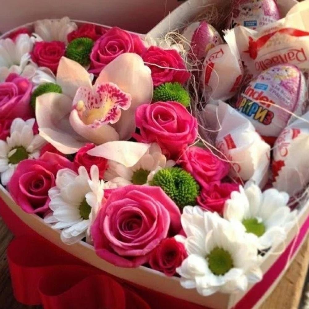 Коробка с цветами и конфетами