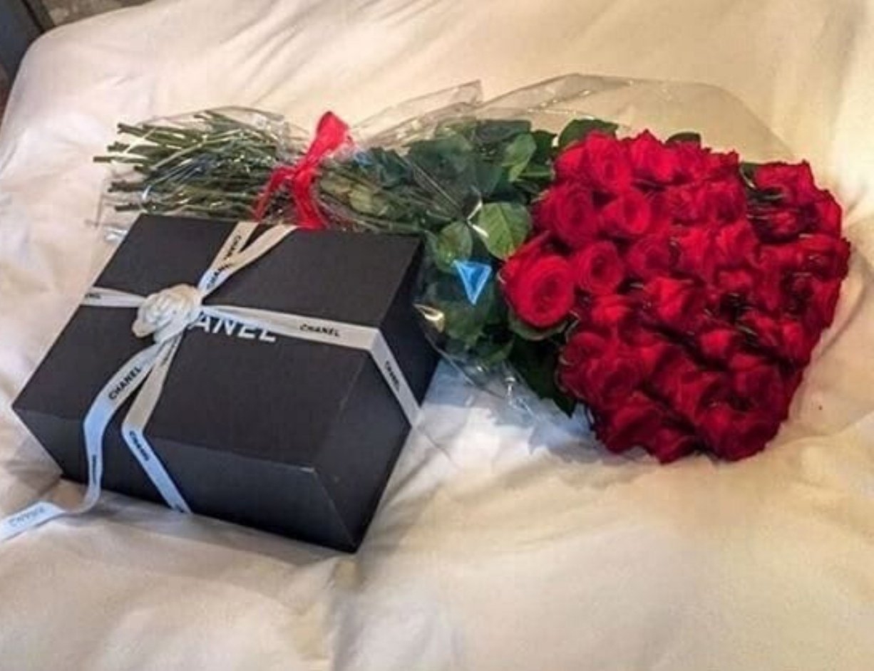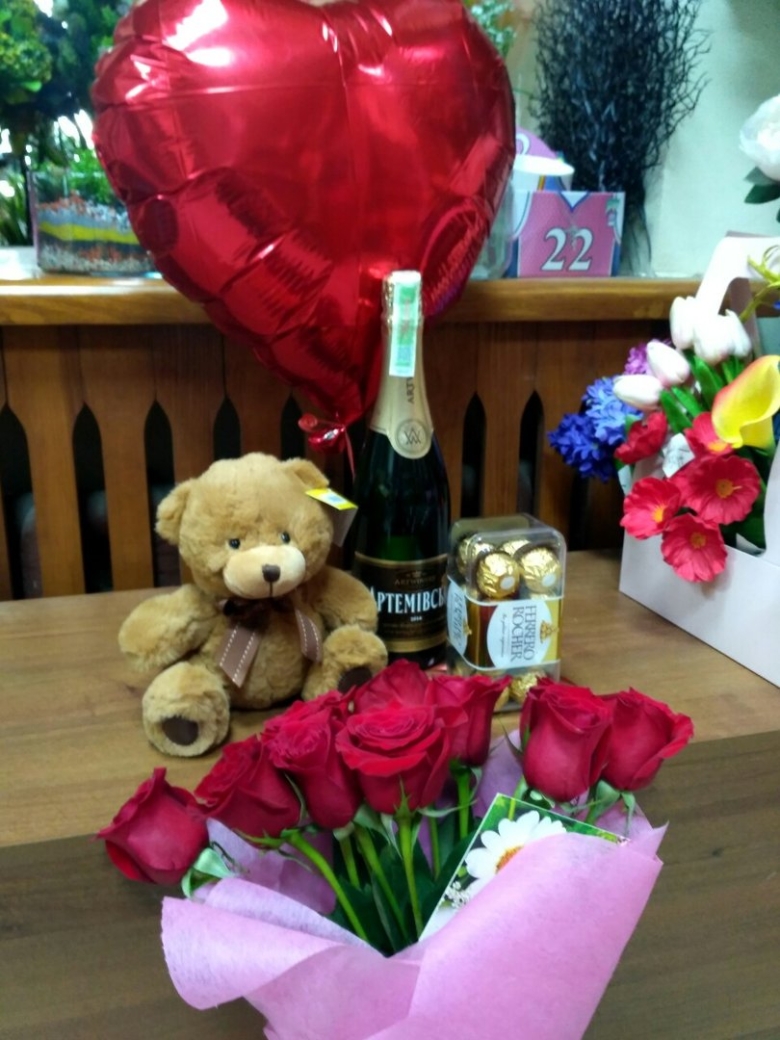 Букет роз и подарок