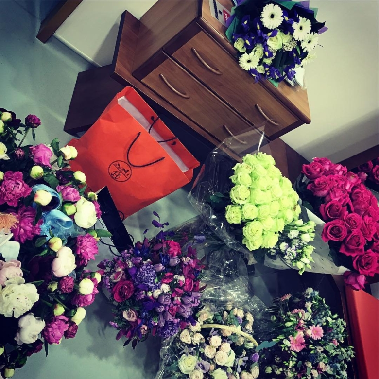 Комната с подарками и цветами