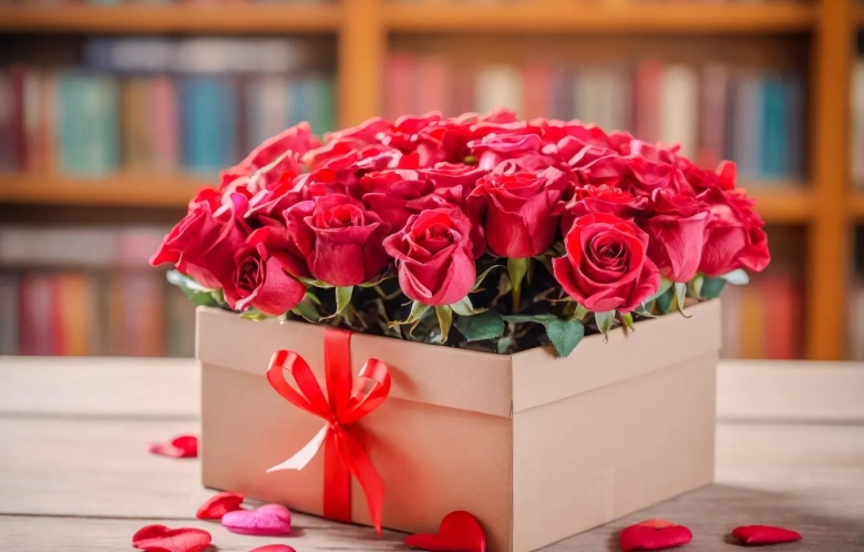 Цветы в коробке на столе