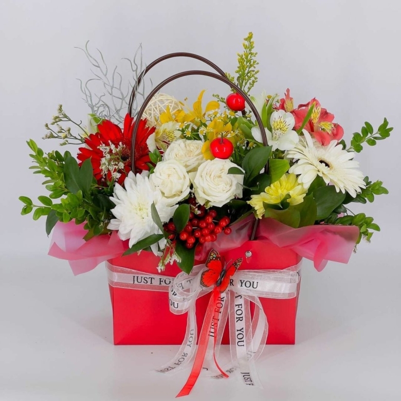 Цветы в сумочке композиция