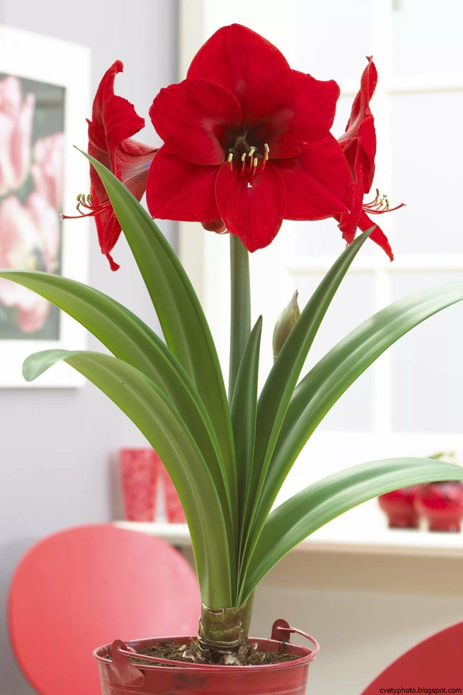 Цветок с длинными узкими листьями и красным цветком (64 фото)