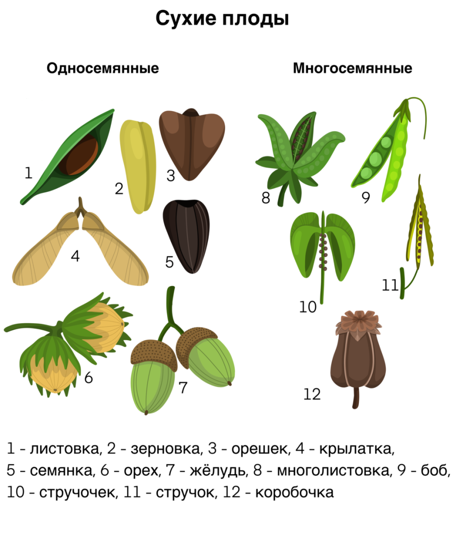 Плоды сухие и сочные таблица