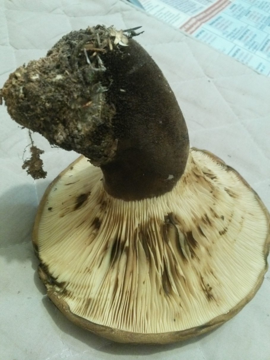 Гриб коричневый пластинчатый на толстой ножке