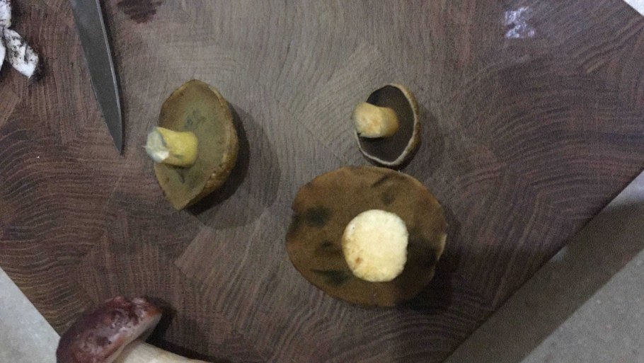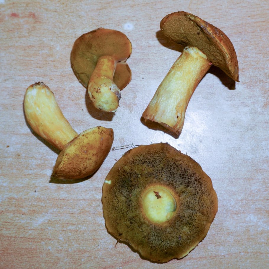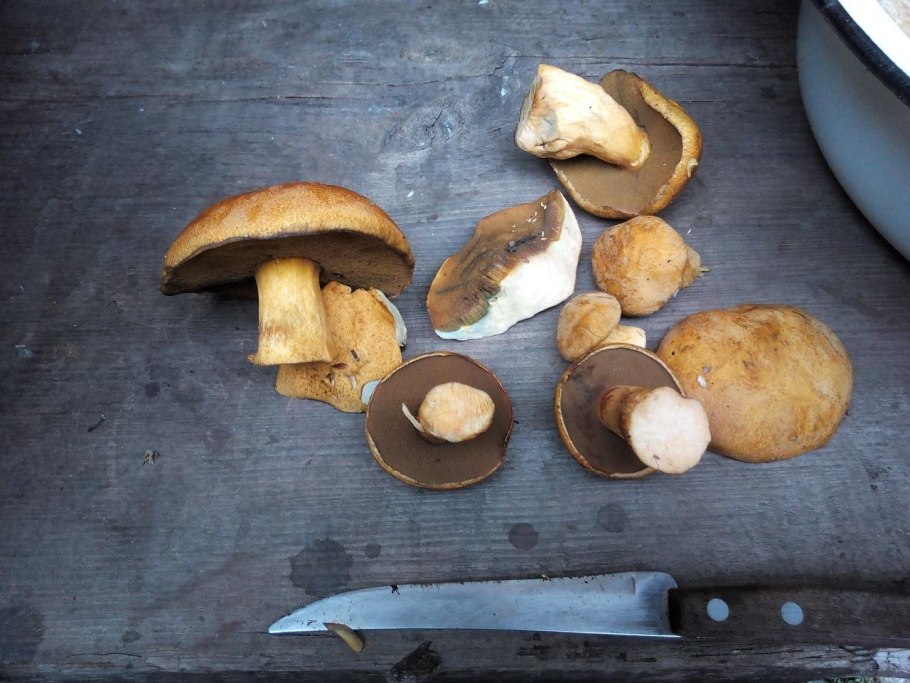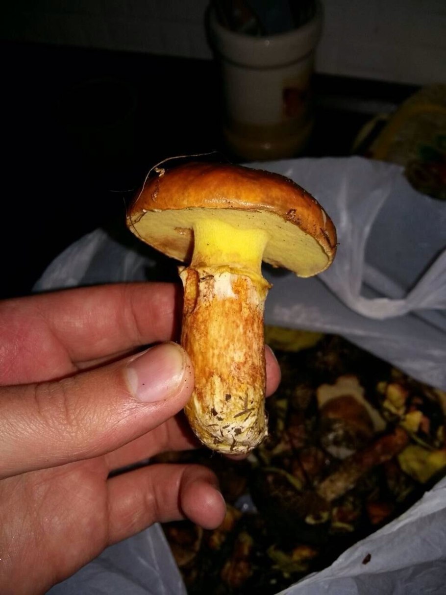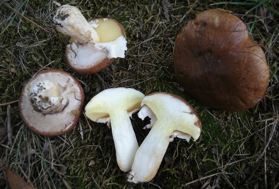Коричневые грибы с желтой мякотью