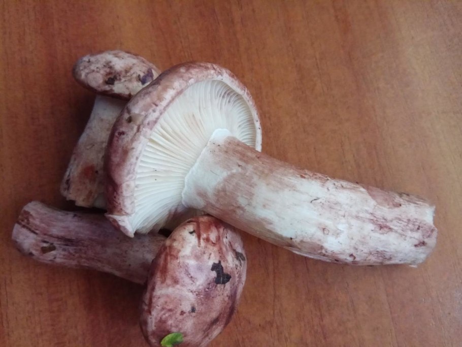 Фиолетовый гриб с толстой ножкой