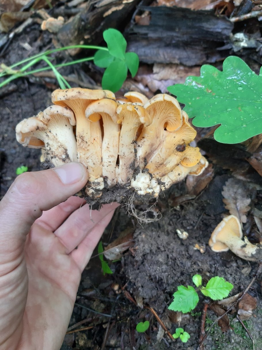 Омфалот маслиновый и лисички