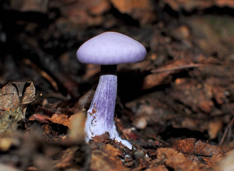 Фиолетовый гриб с толстой ножкой