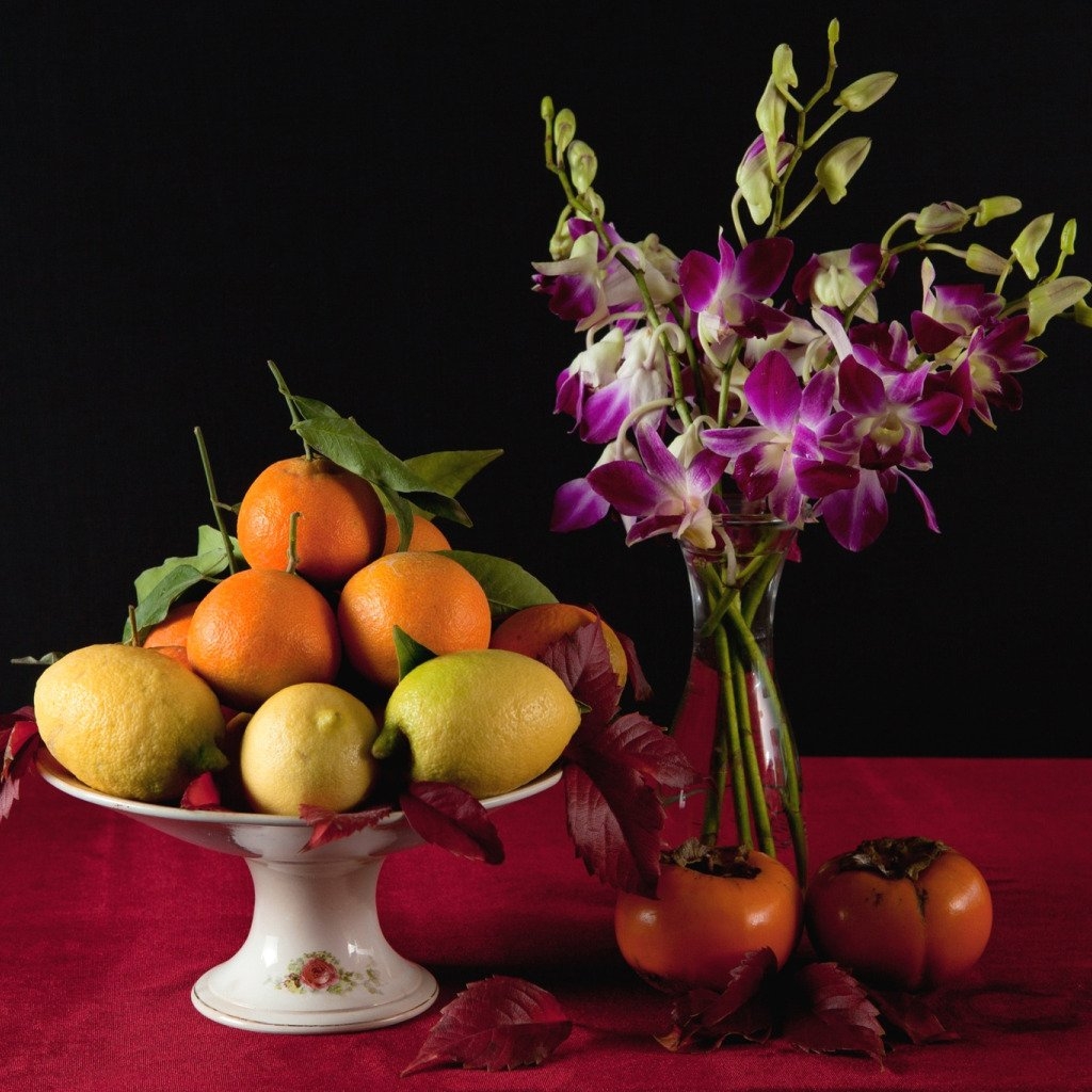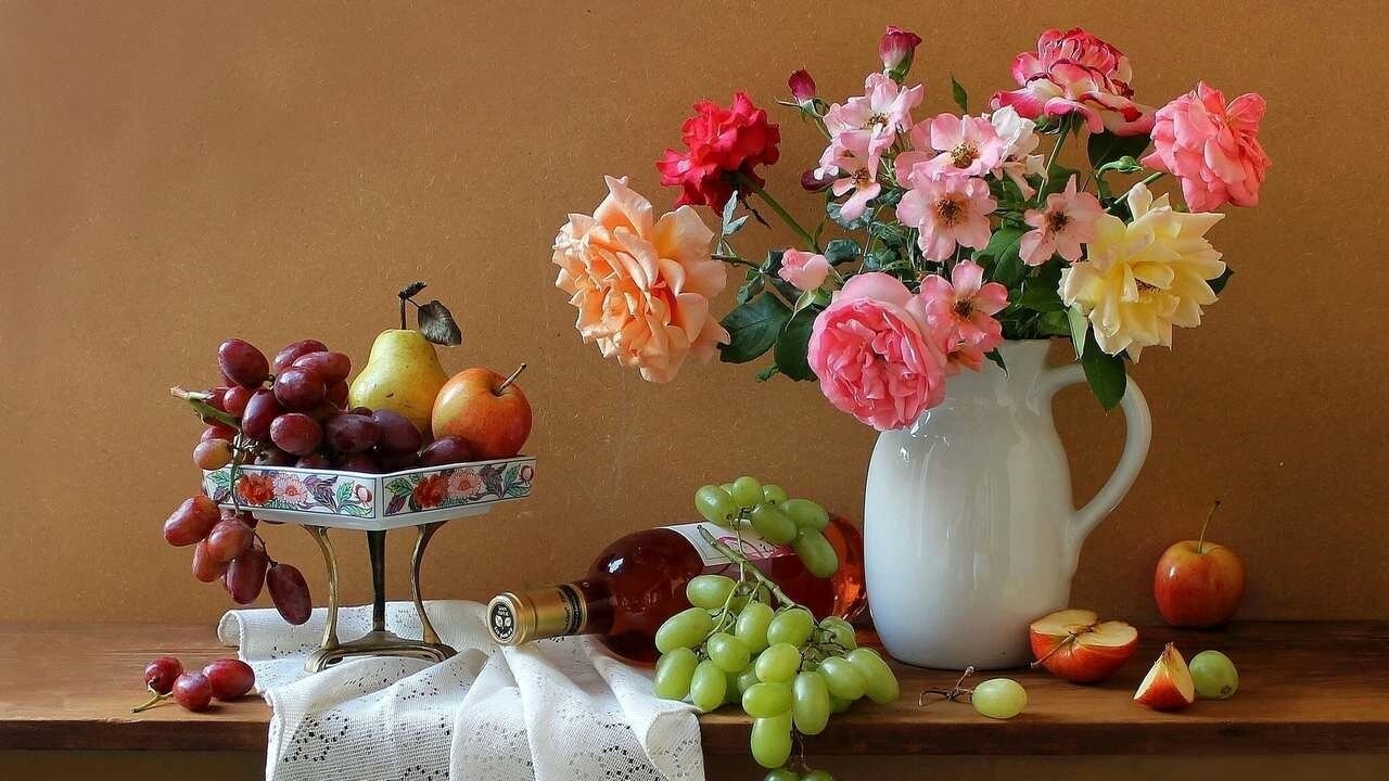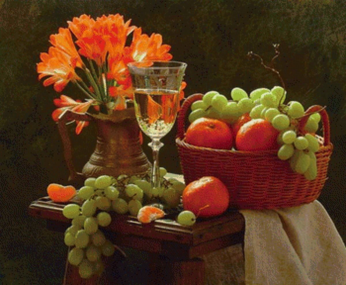 Натюрморт фрукты и цветы