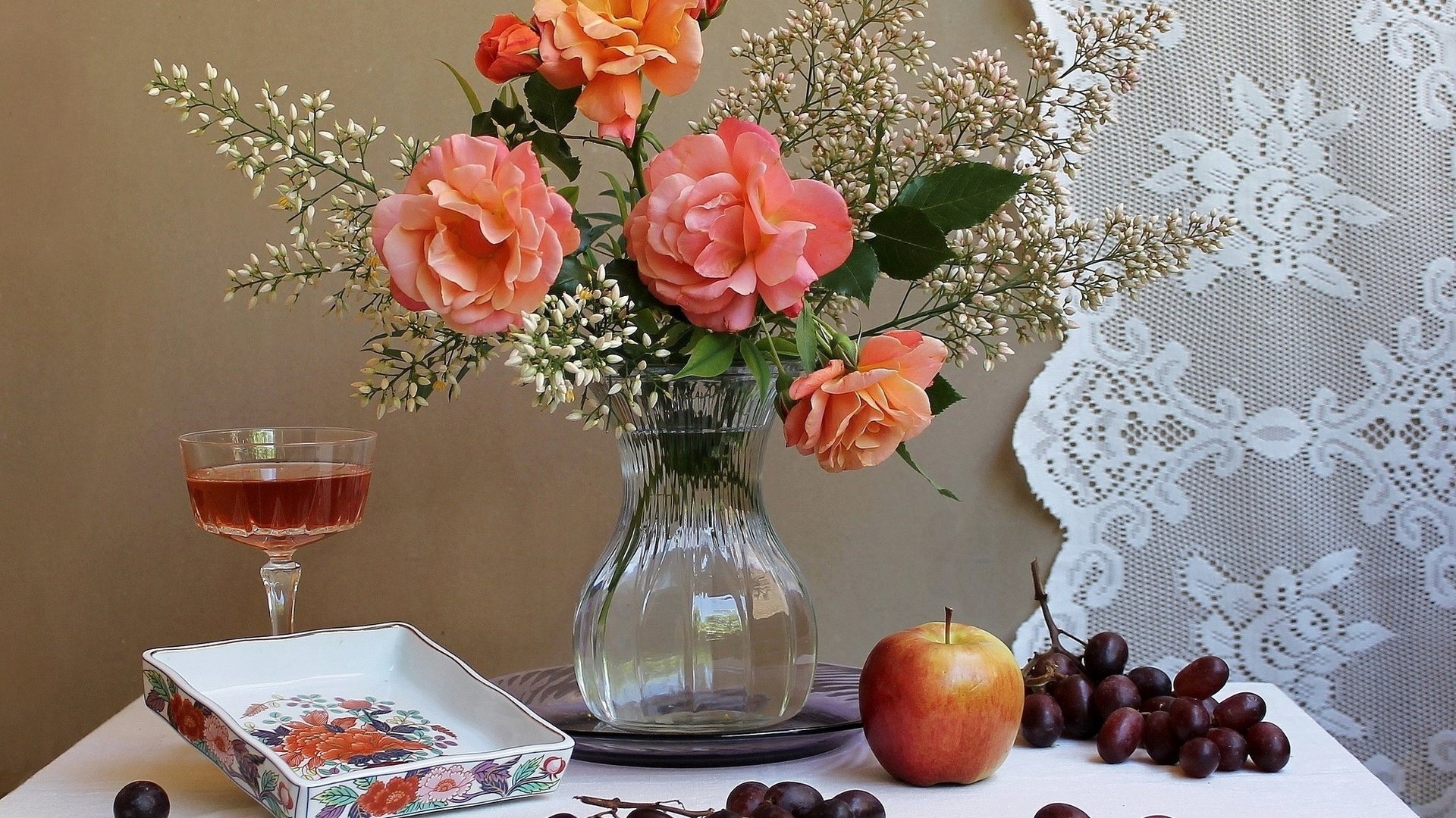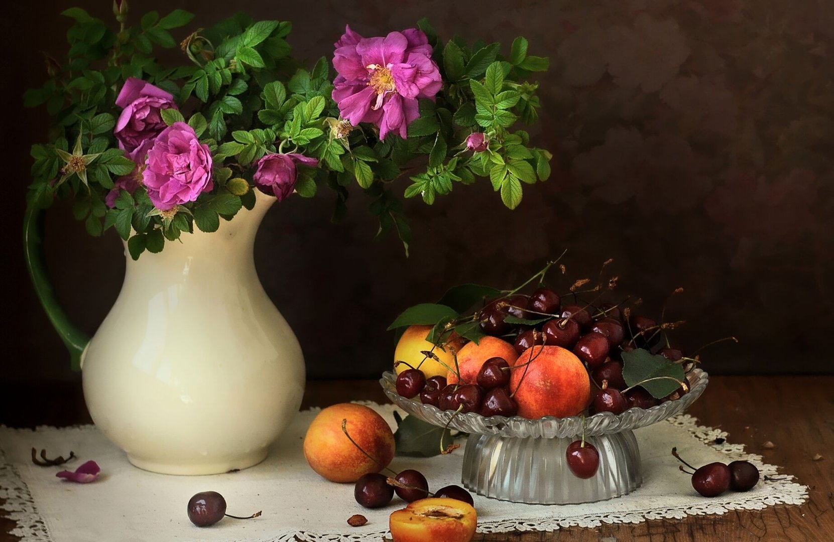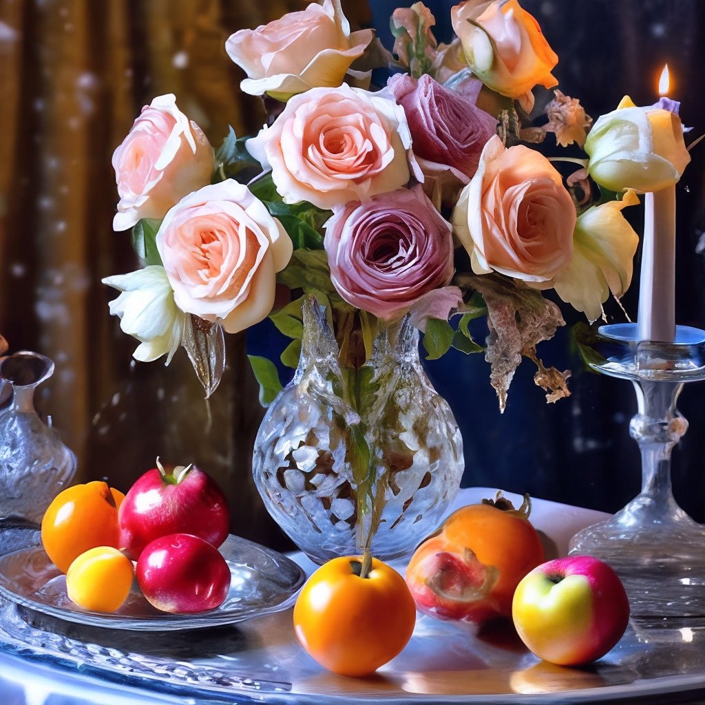 Натюрморт фрукты и цветы