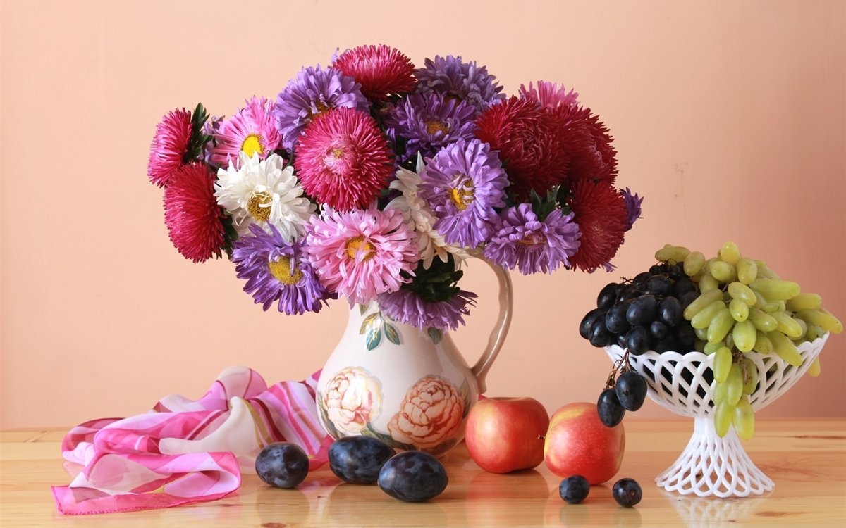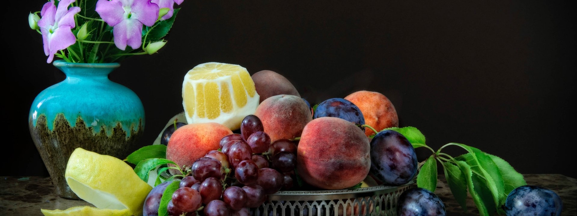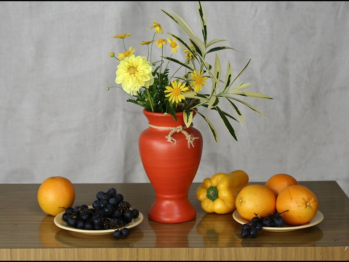 Натюрморт цветы и фрукты
