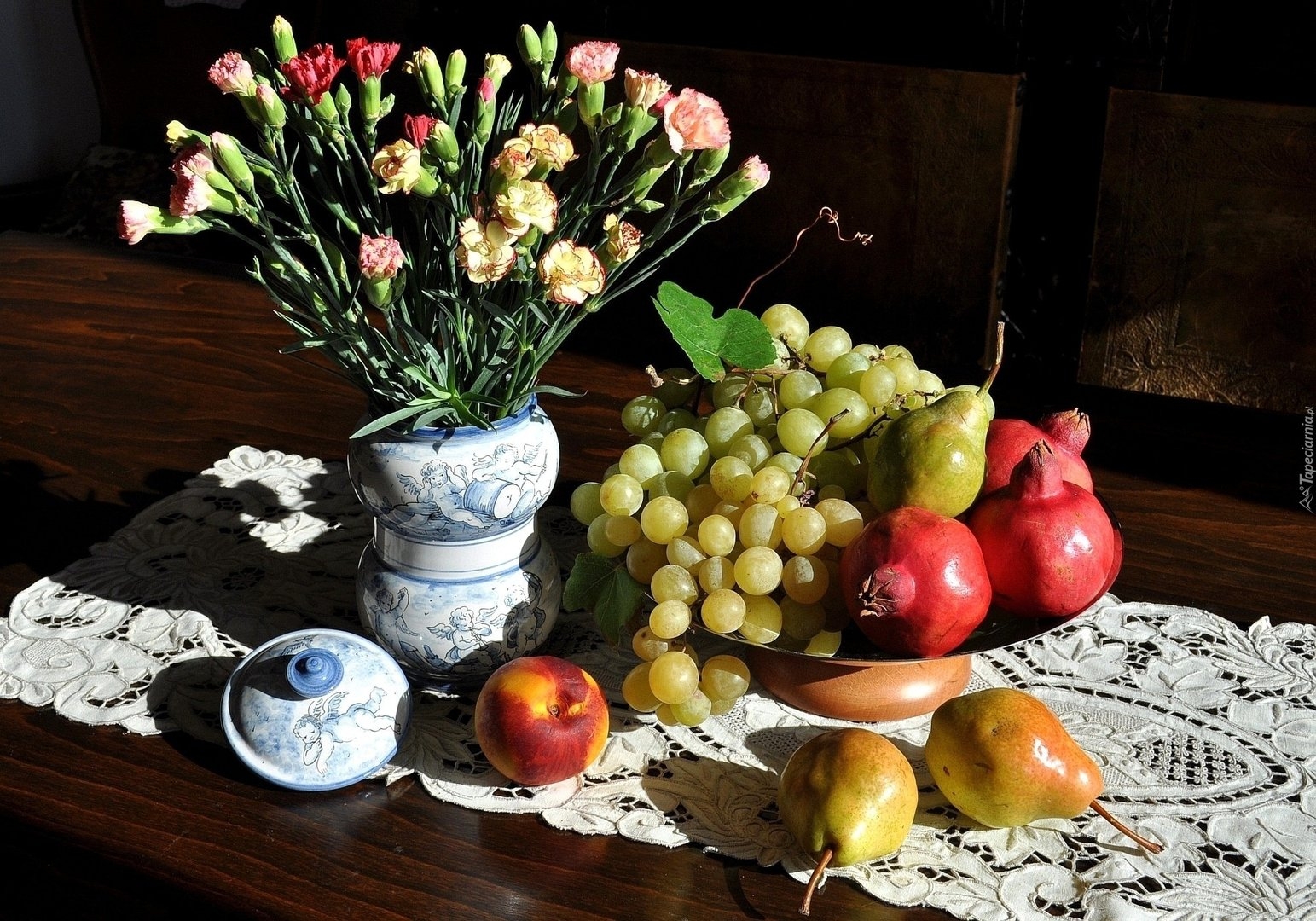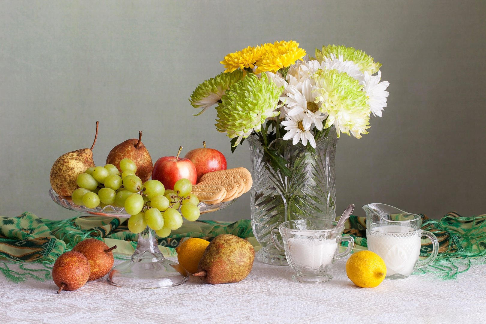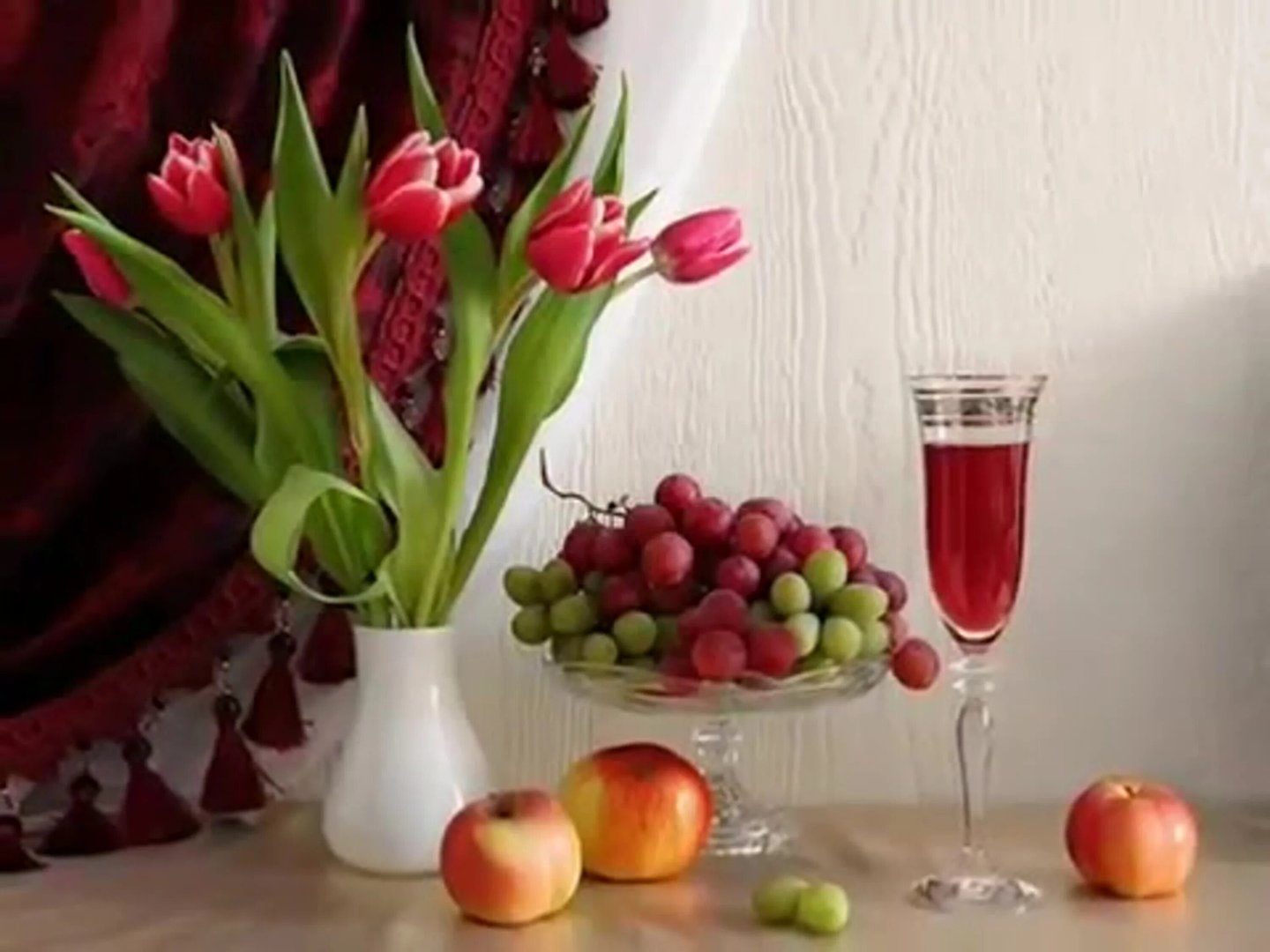 Натюрморт цветы и фрукты