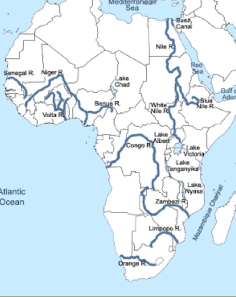 Крупные реки и озера Африки на карте