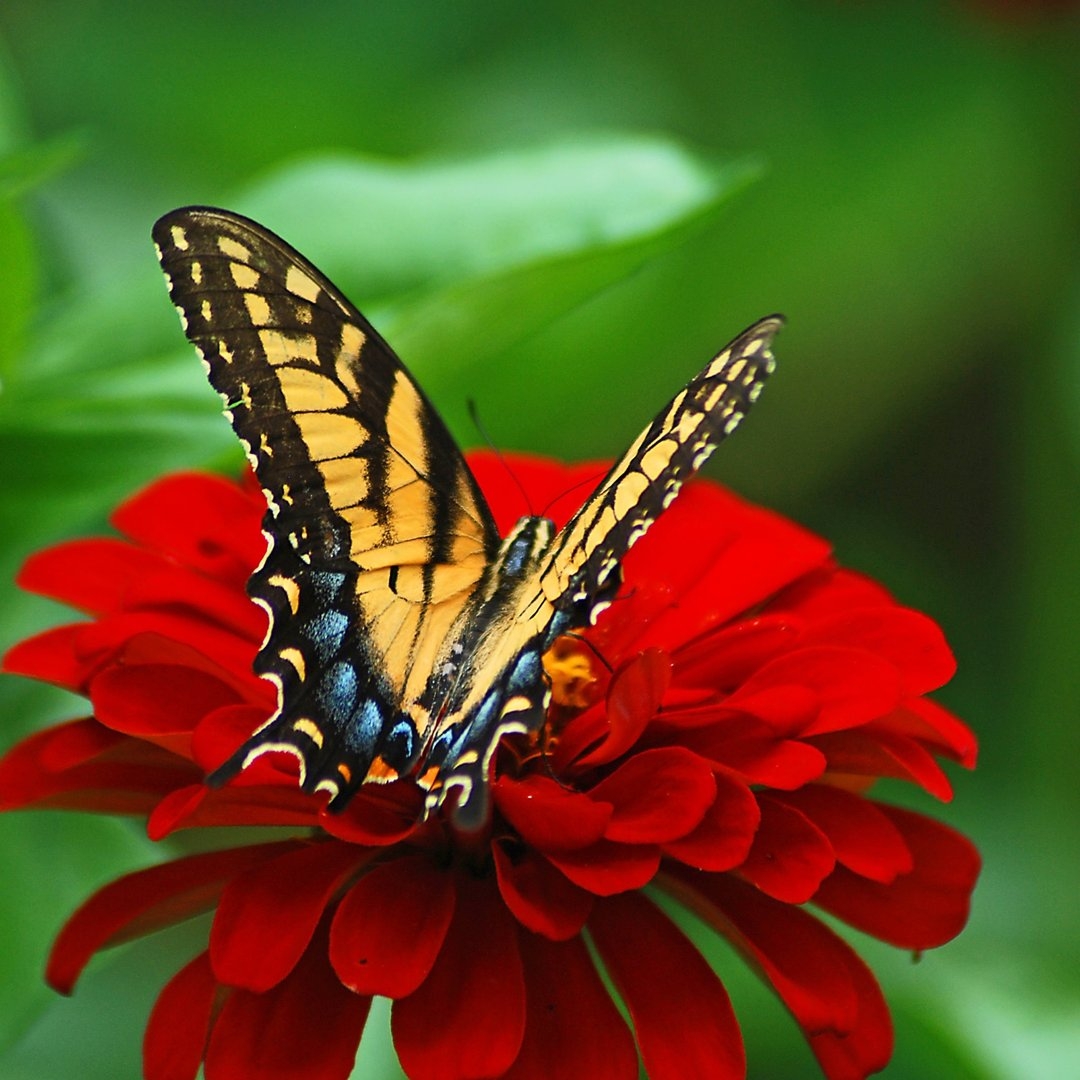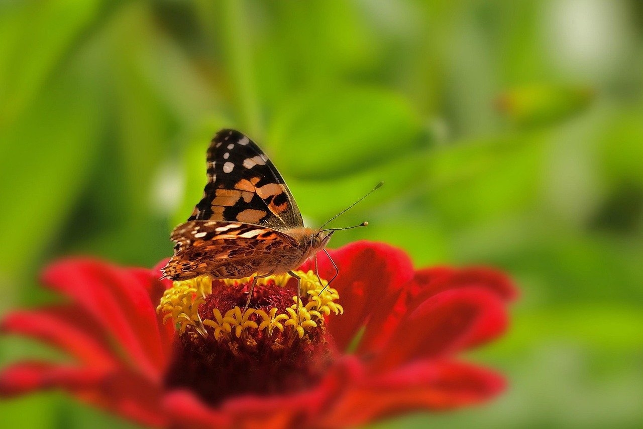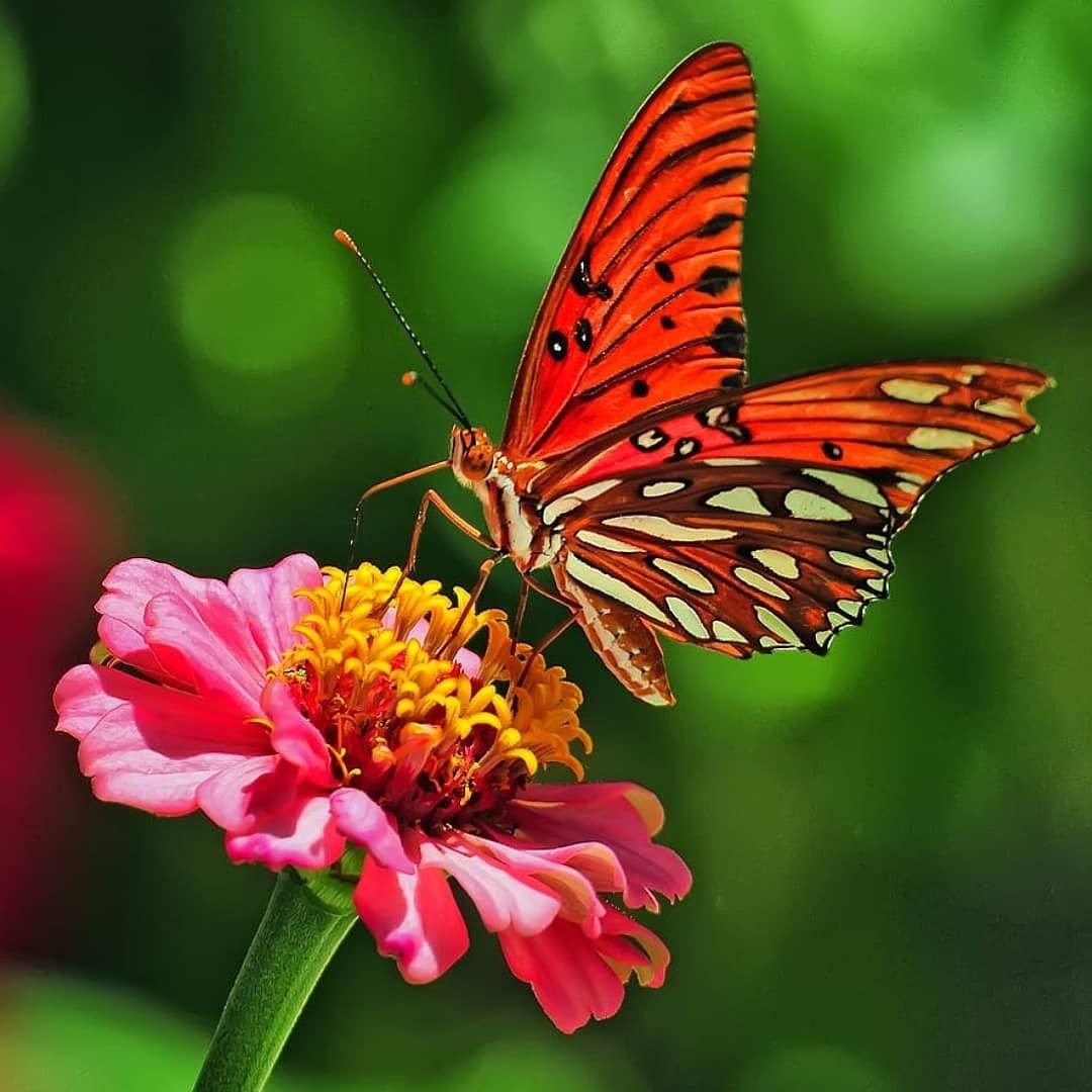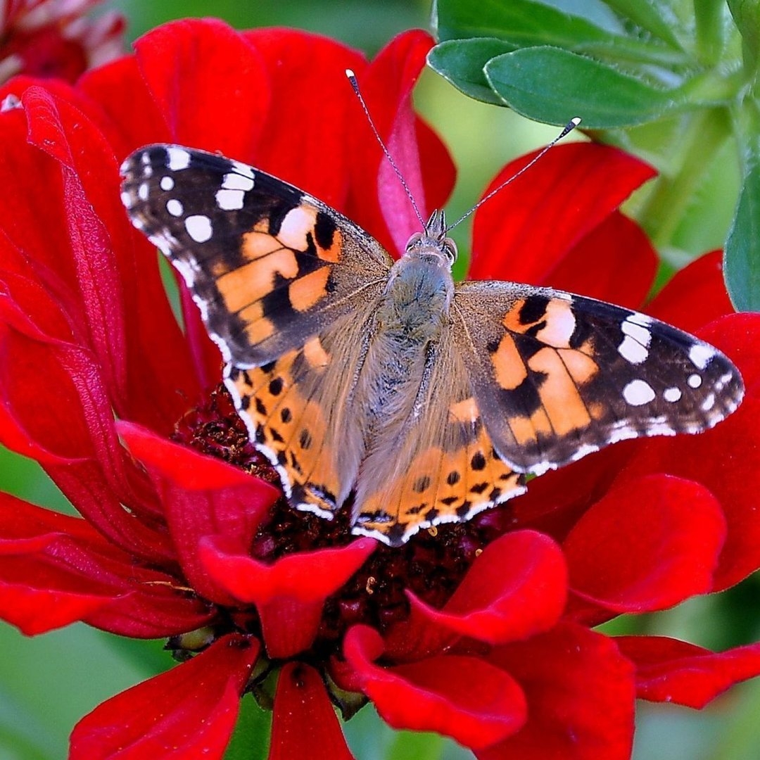 Бабочка на красном цветке