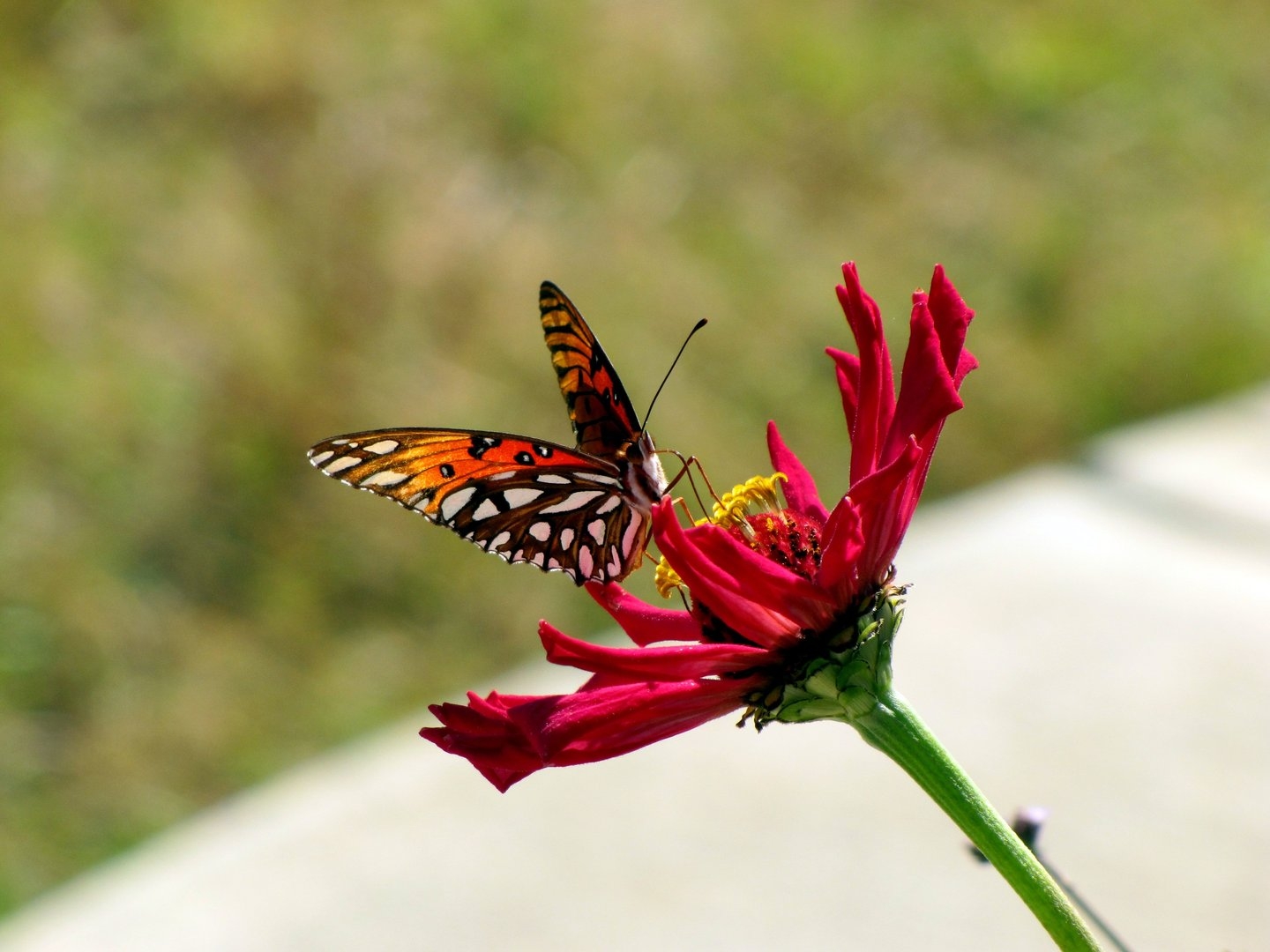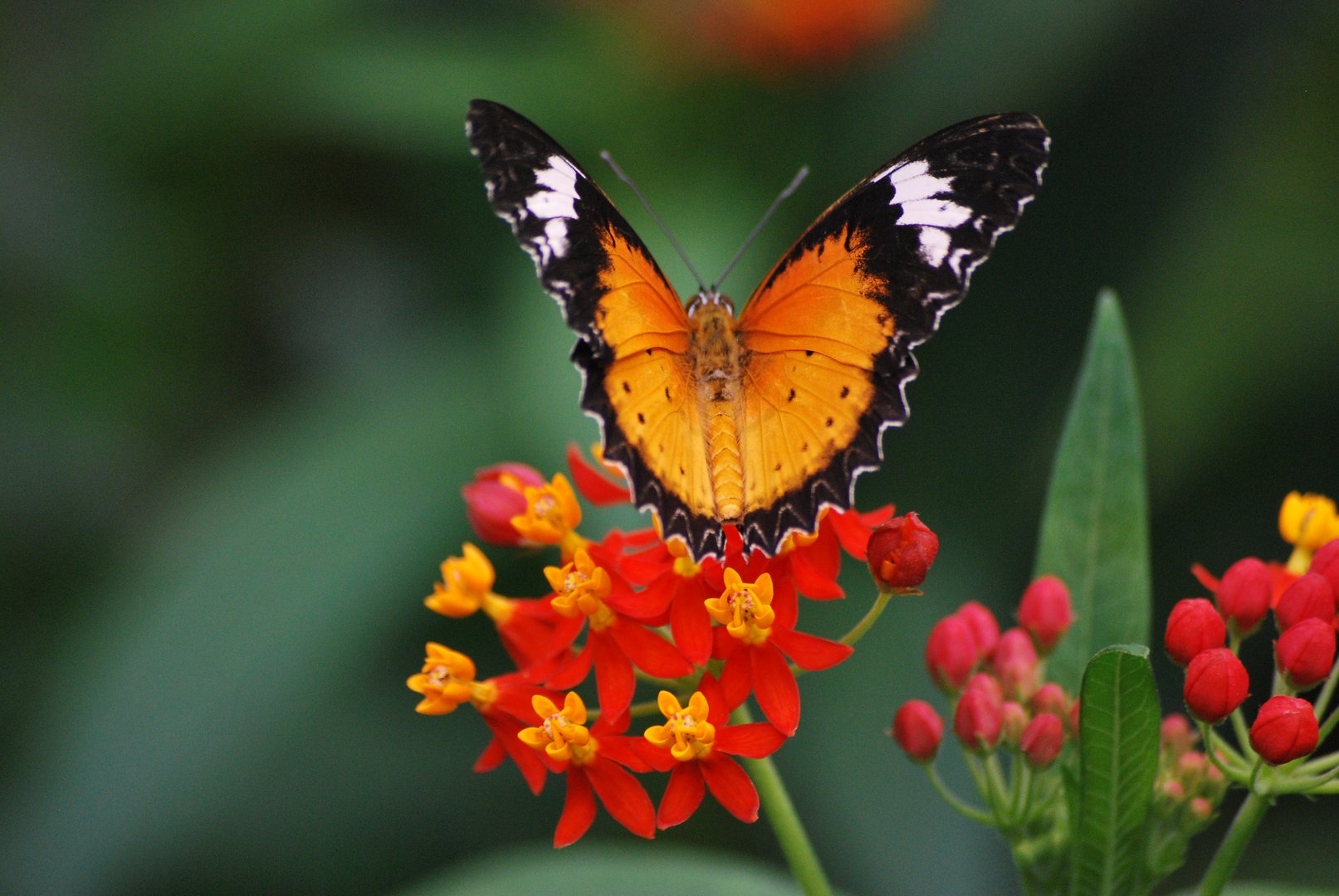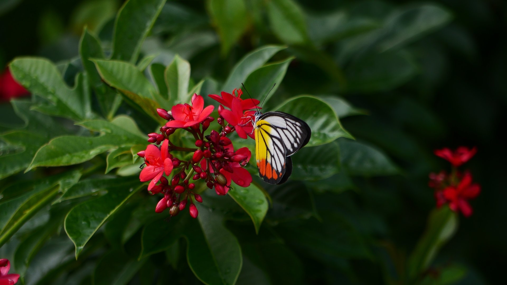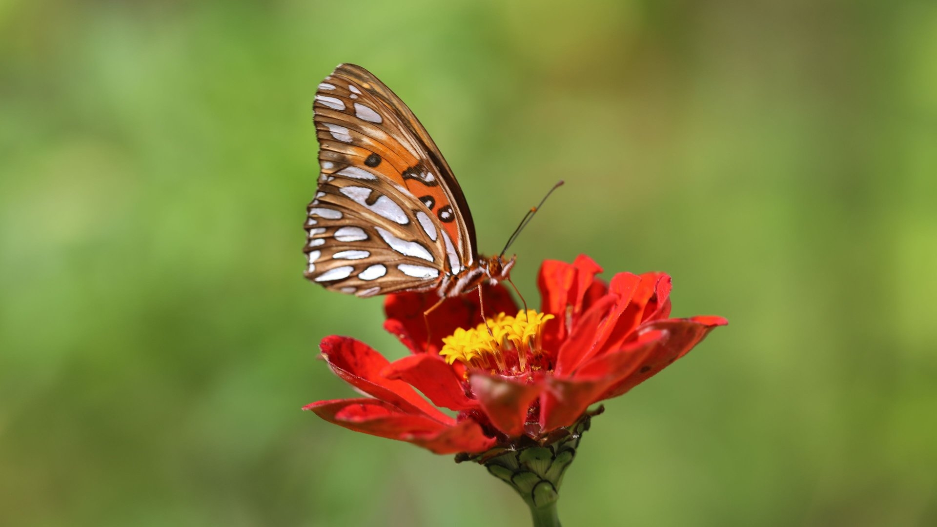 Бабочка на красном цветке