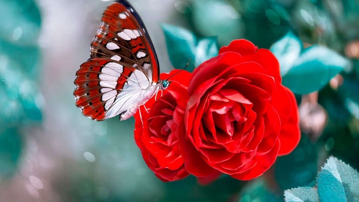 Бабочка на розе