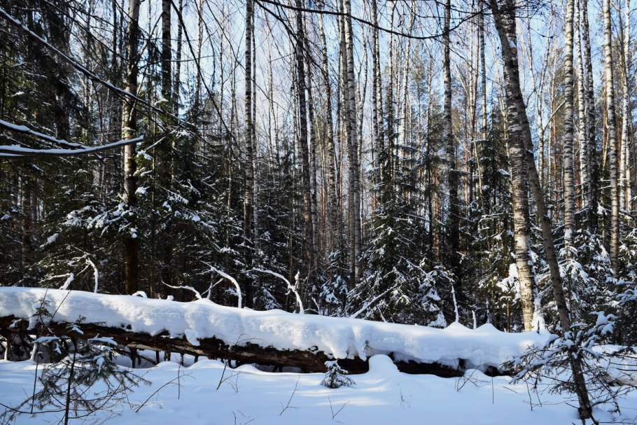 Поваленный лес зимой
